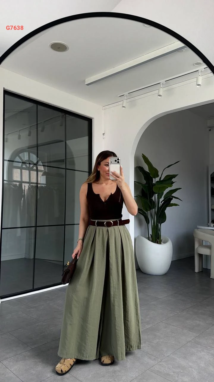 بنطال واسع مع حزام