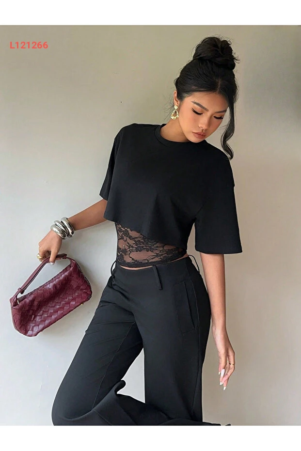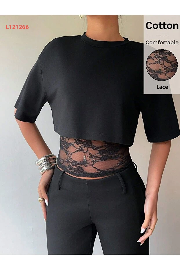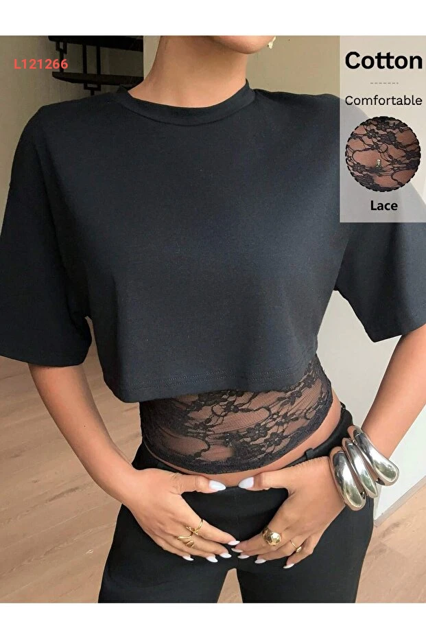 بلوزة نسائية قصيره بقلنسوة من دانتيل بتصميم أنيق من وايلد فلاور