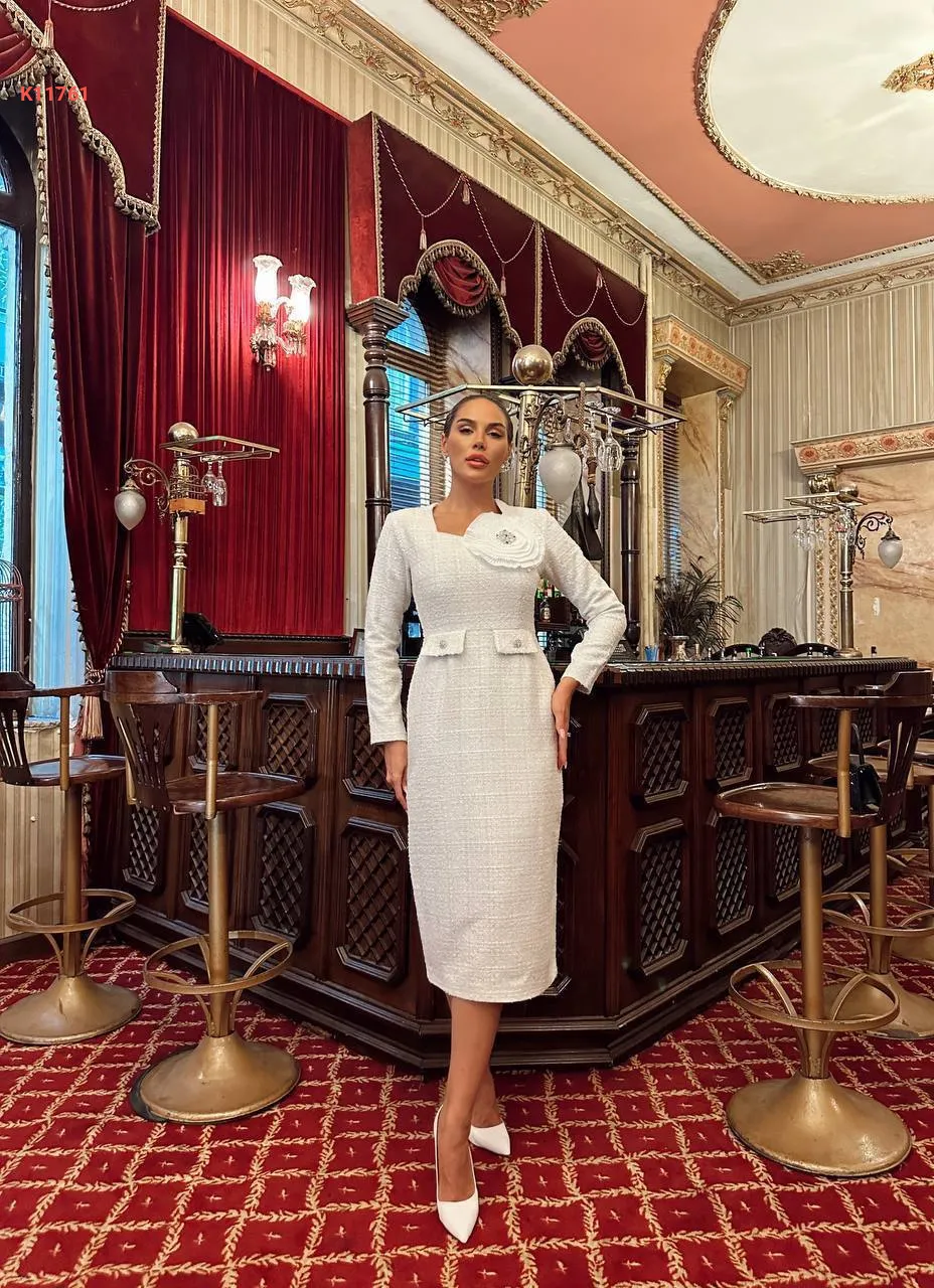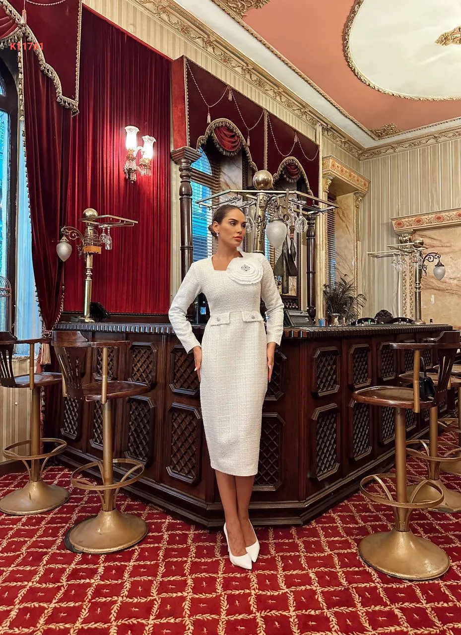 فستان شتوي مزين بوردة