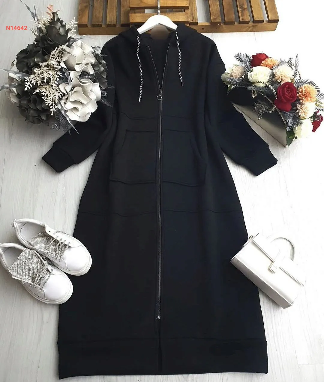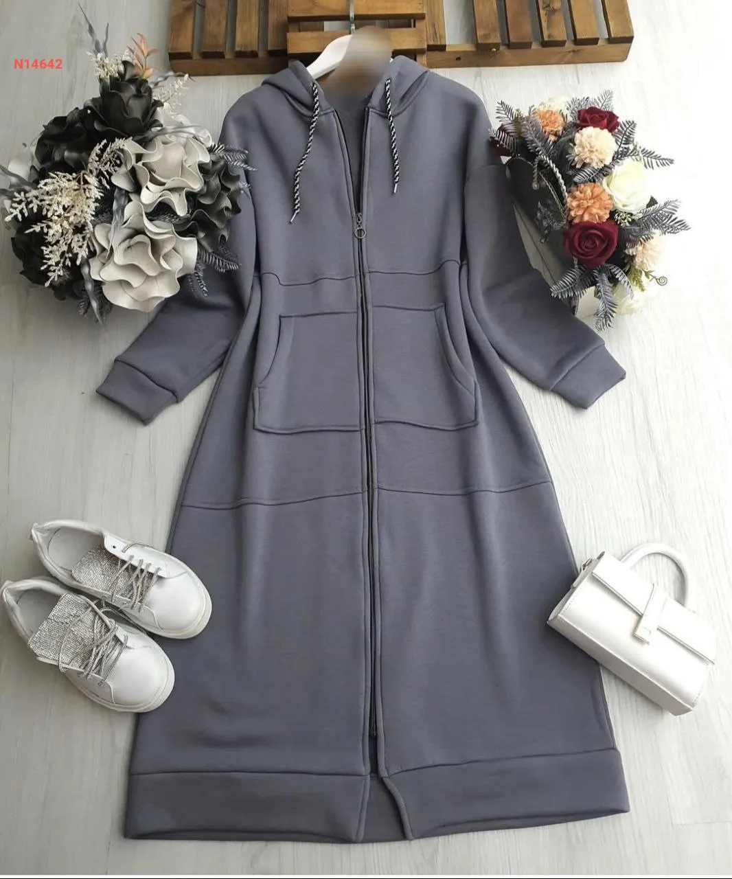 جاكيت شتوي طويل مع وشاح