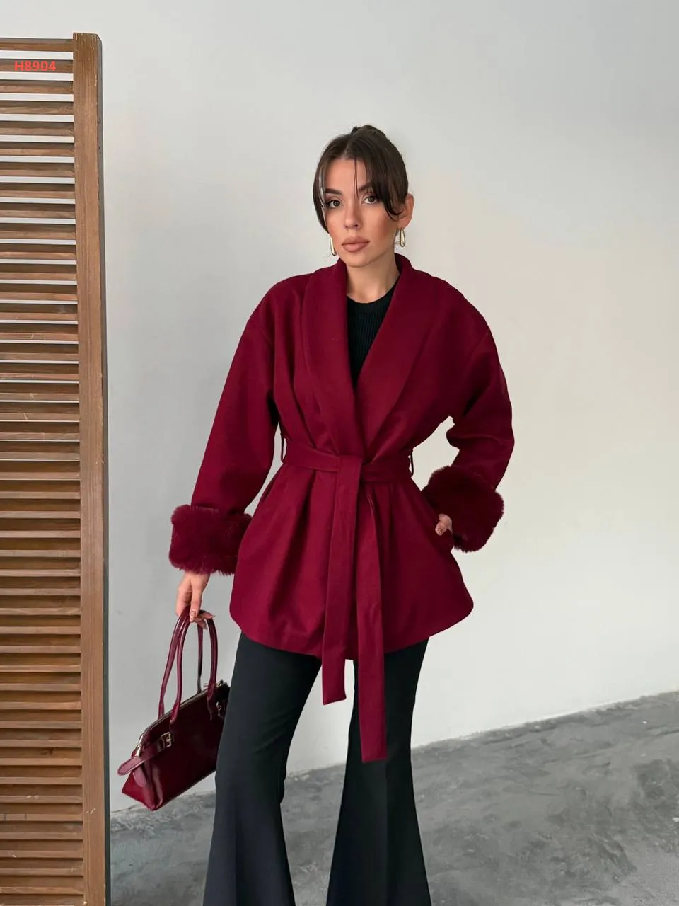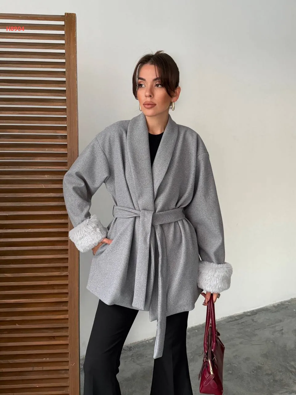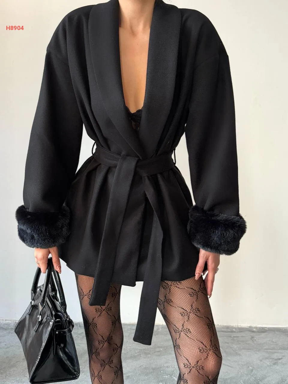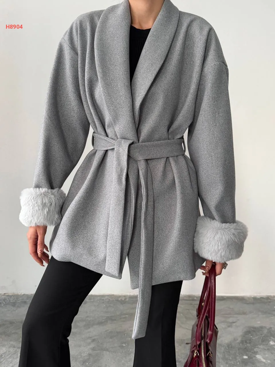جاكيت شتوي بأكمام فرو وزنار