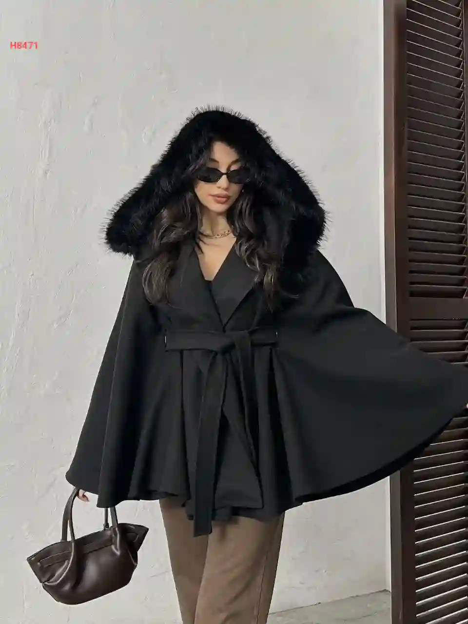 جاكيت جلد وفرو بزنار