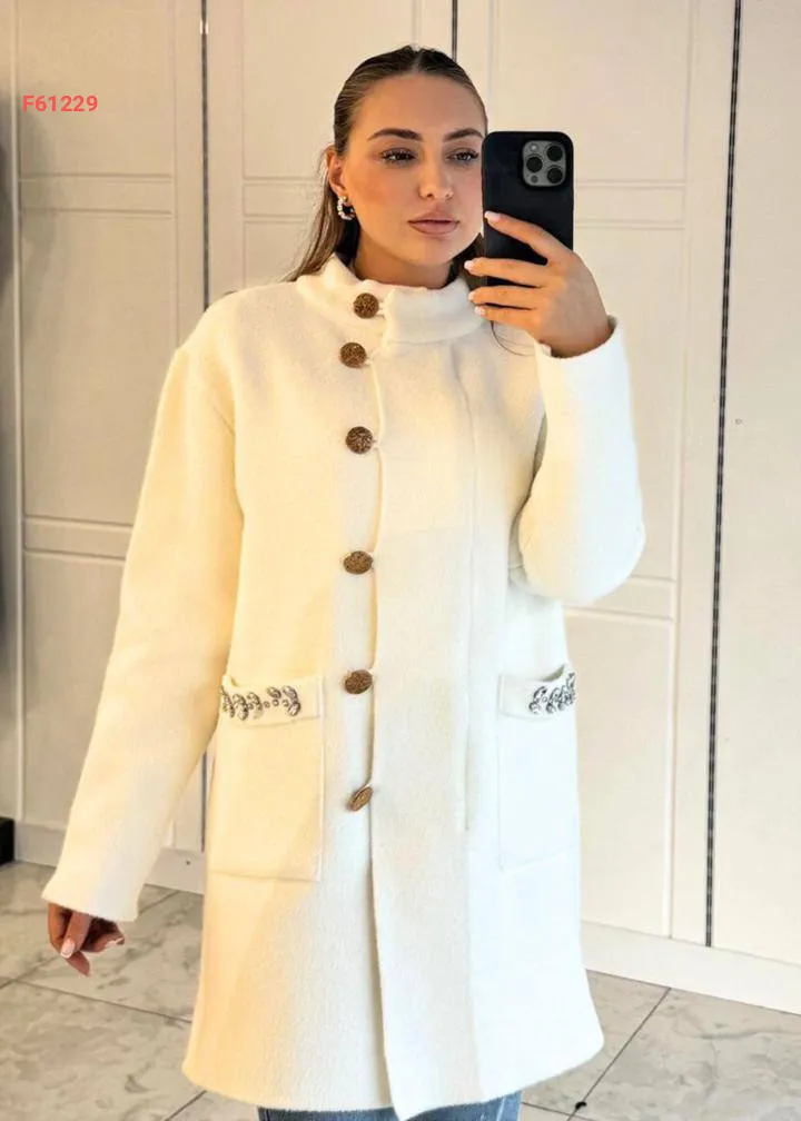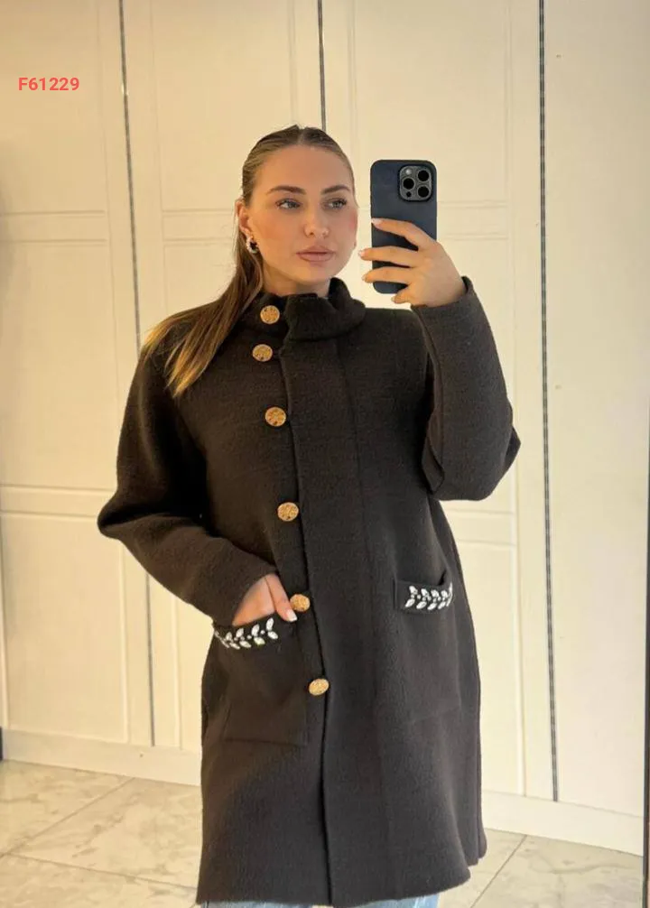جاكيت شتوي بجيوب مطرزة بالحجر