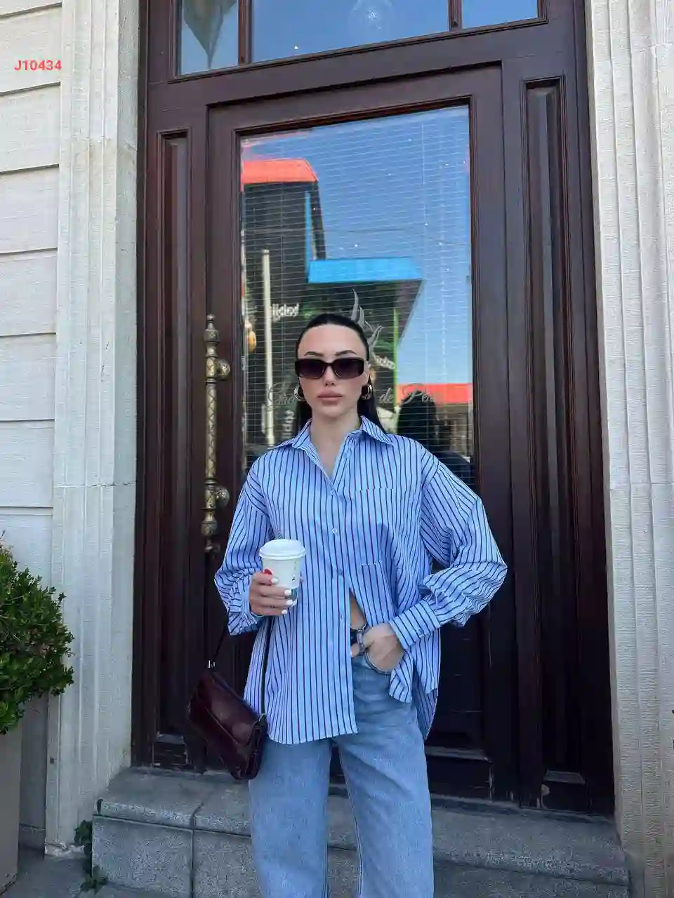 قميص كم طويل مقلم
