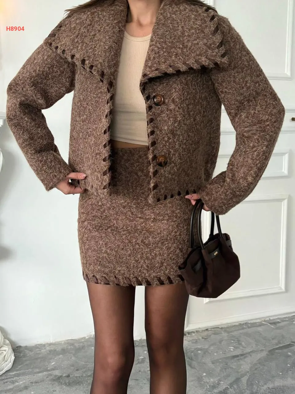 طقم تنورة شتوي قصير