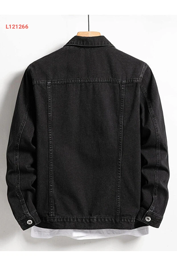 جاكيت جينز دنيم للرجال بقصة عادية مع جيوب وأزرار