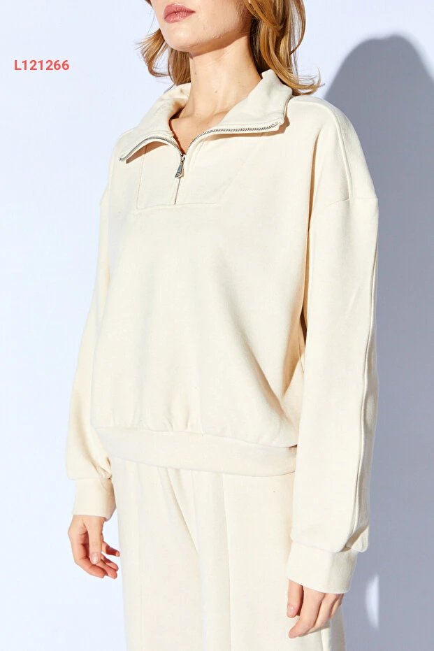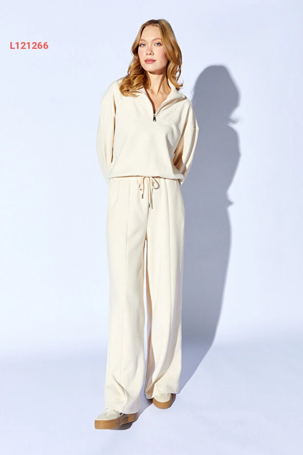 طقم سويت شيرت بسحاب نصف و بنطال مشدود الخصر من إديشن وومن