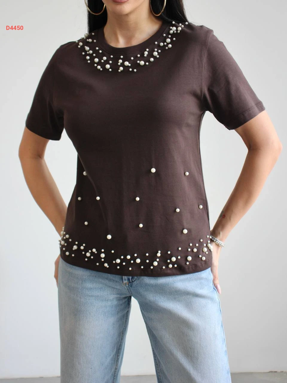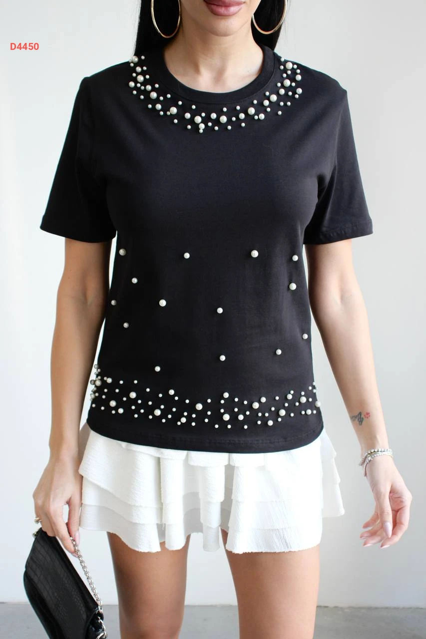 كنزة نسائية مزينة بالؤلؤ