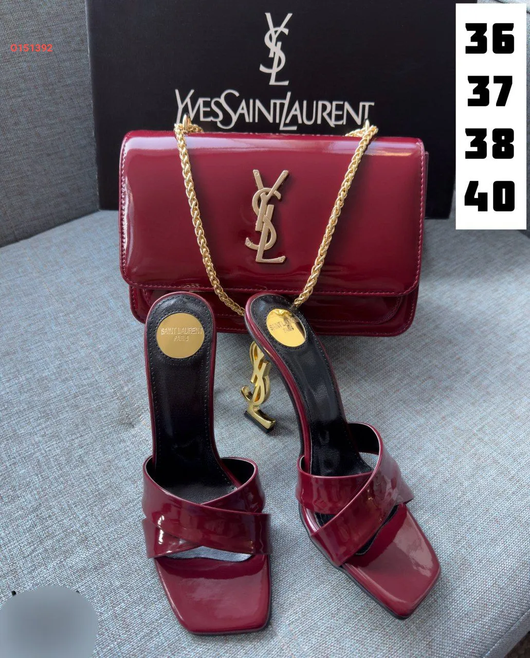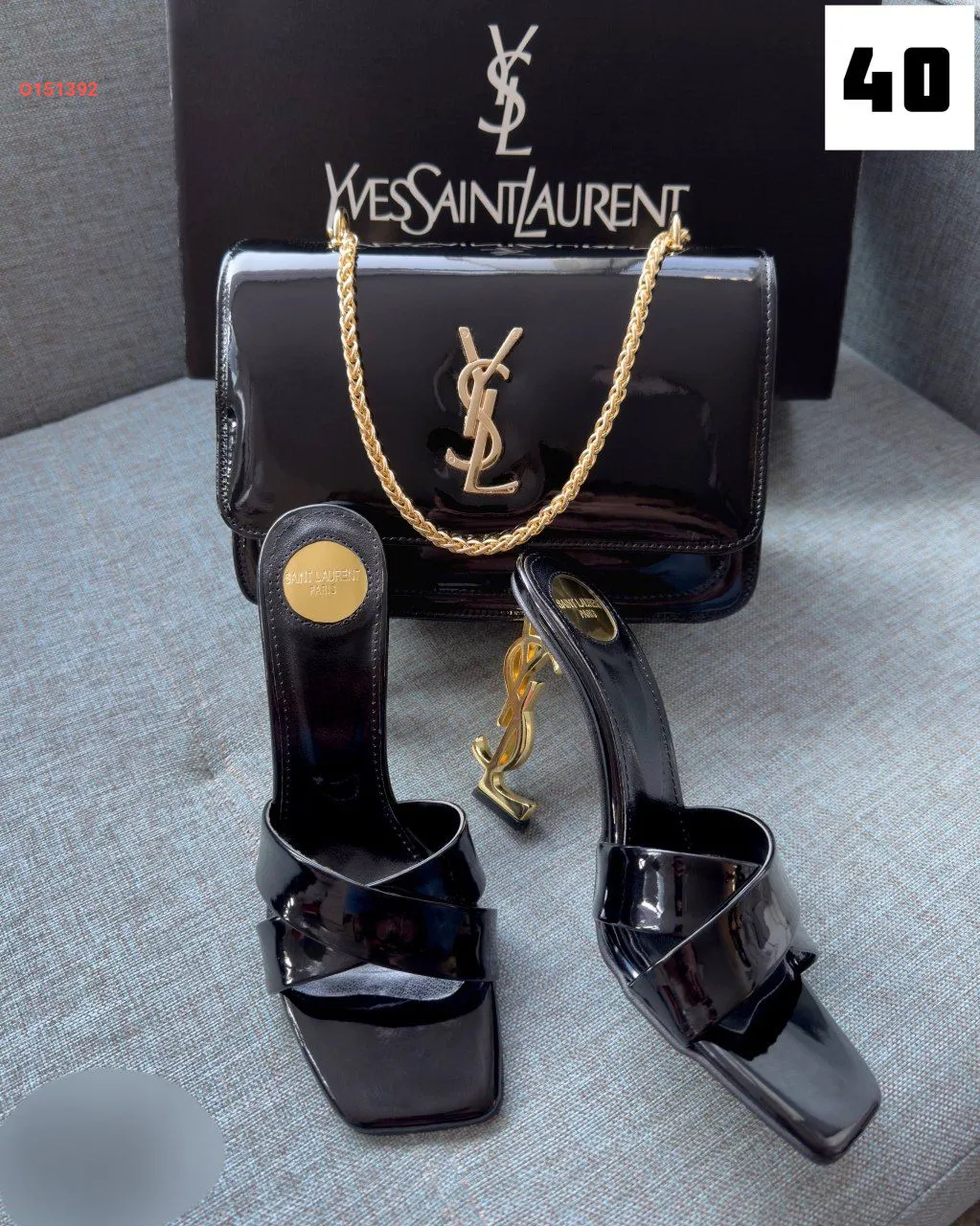 طقم حقيبة وحذاء نسائي ماركة سانت لورانت