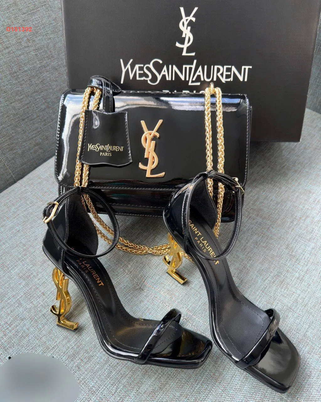 طقم حقيبة وحذاء نسائي ماركة سانت لورانت