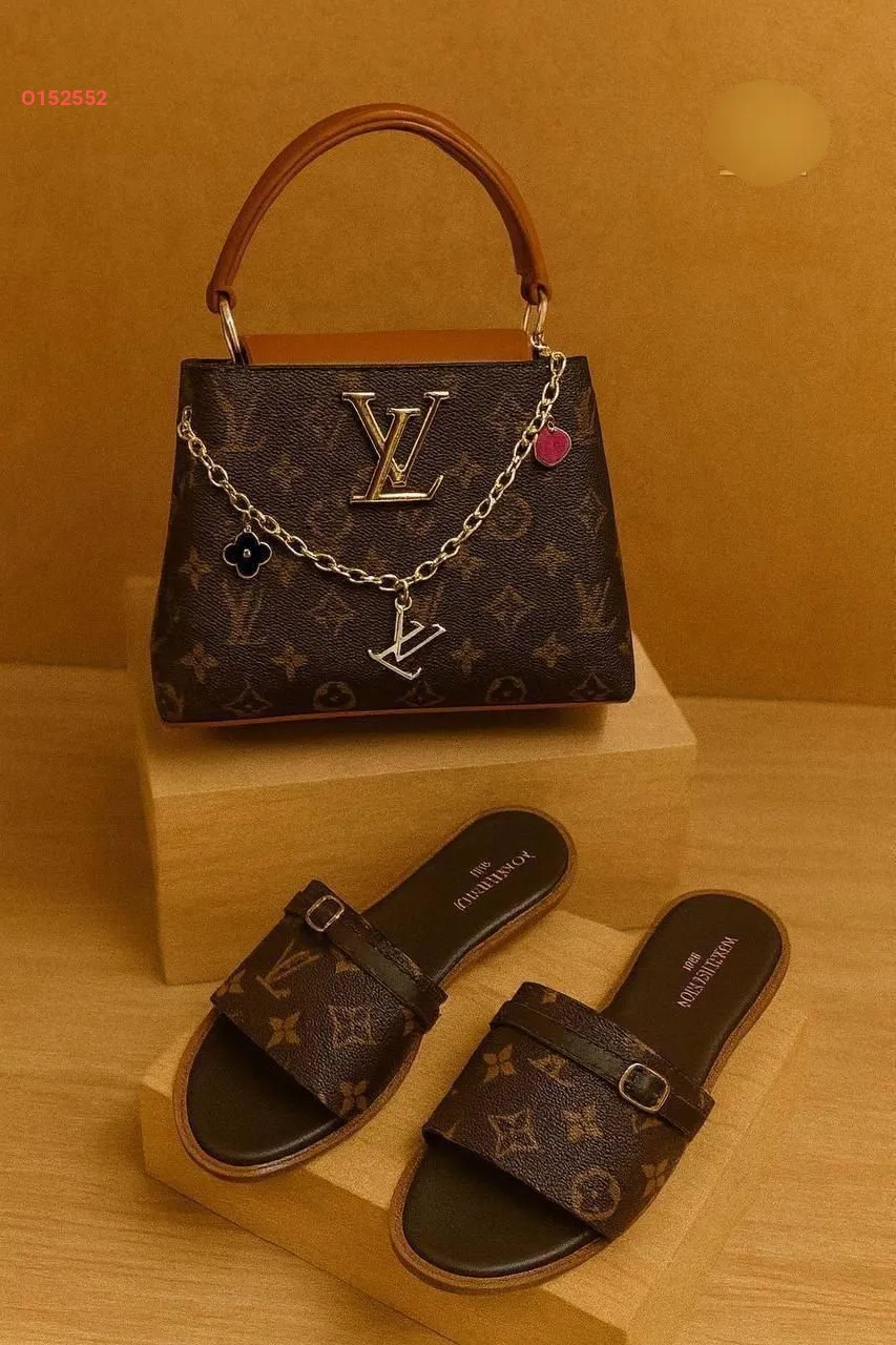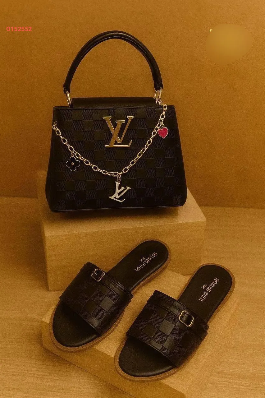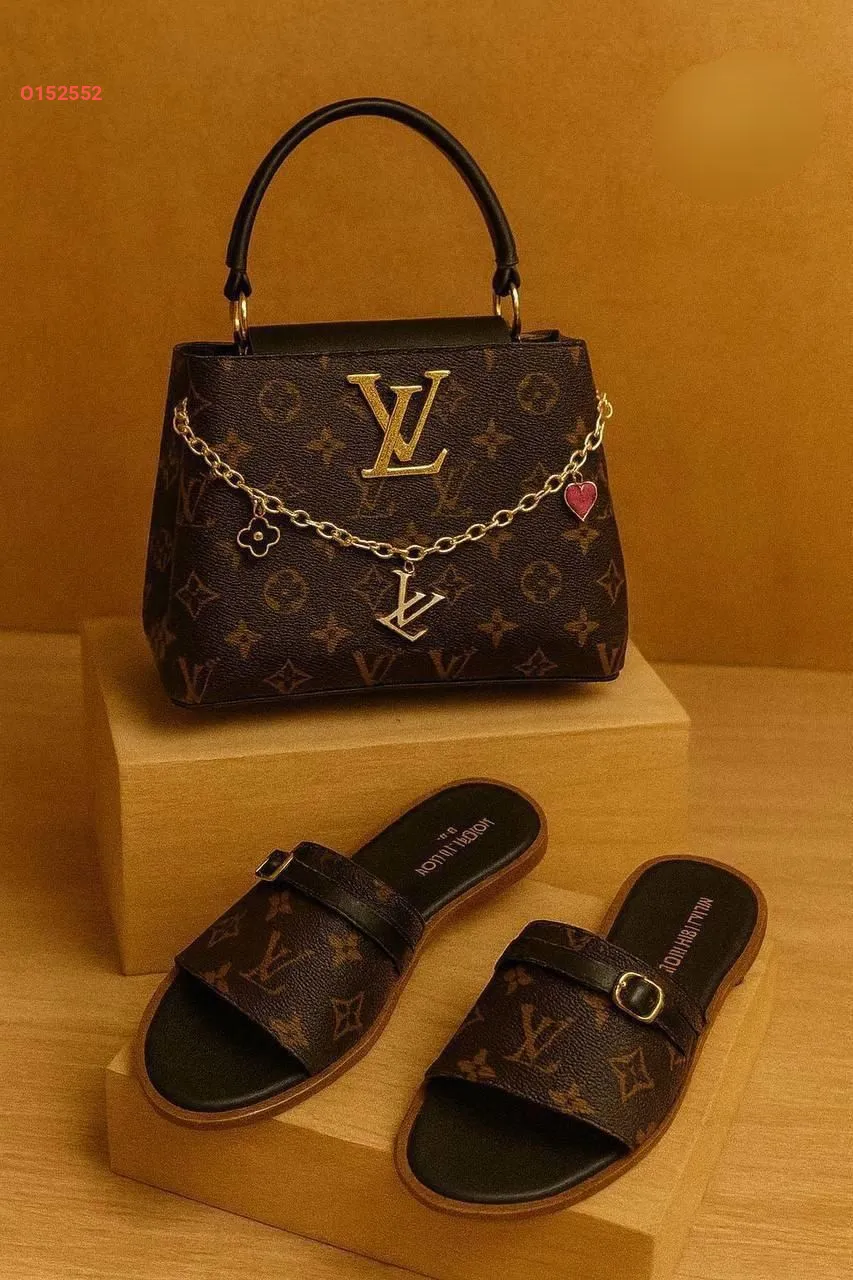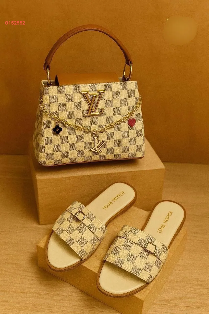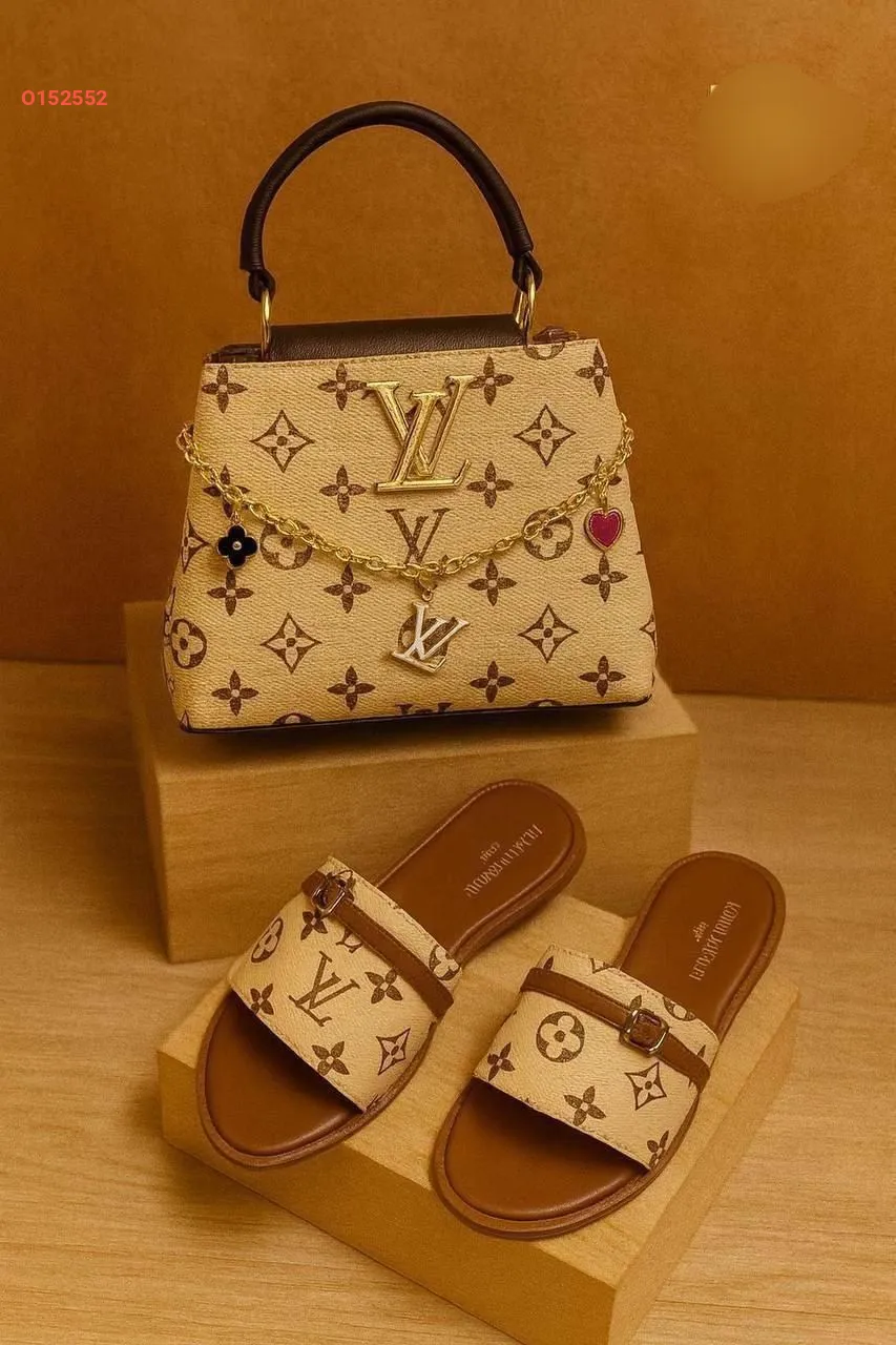 طقم حقيبة وحذاء نسائي ماركة لويس فيتون