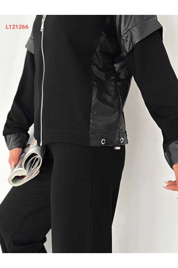 طقم أزياء رياضية نسائي من قماش مودال مع سحاب بتفاصيل قماش باراشوت