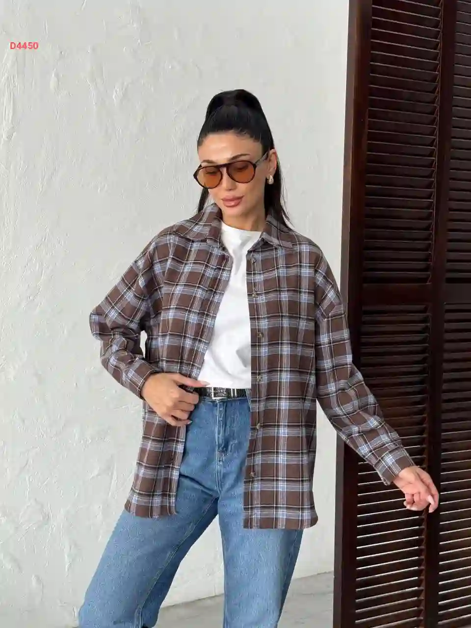 قميص نسائي منقوش بأزرار مع موديل جيب