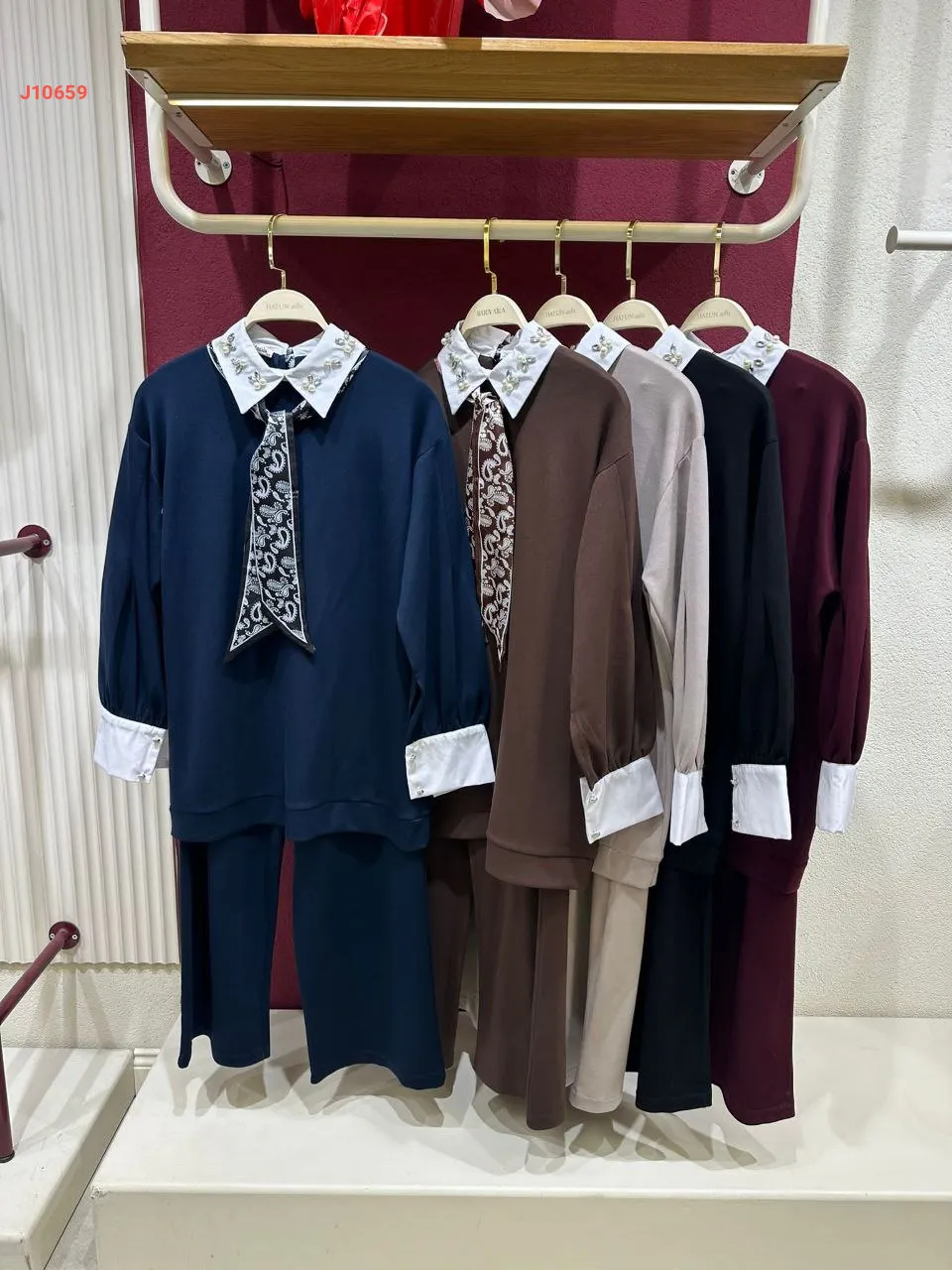طقم نسائي ، ياقة قميص مع ربطة عنق