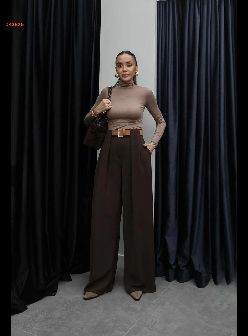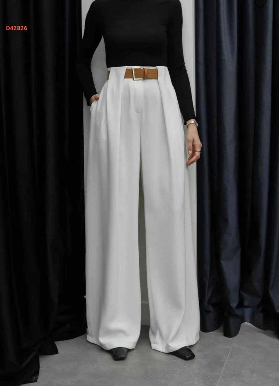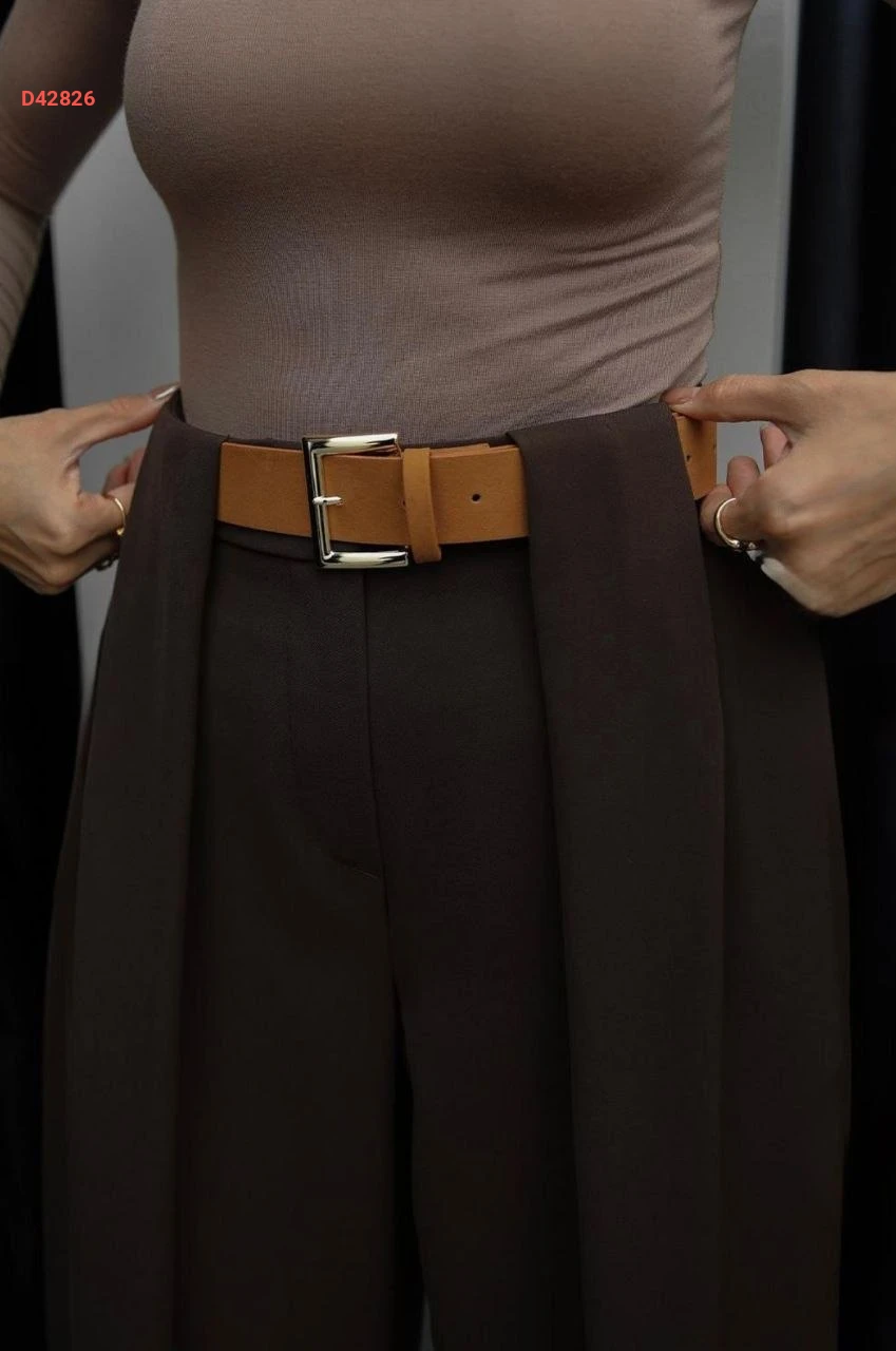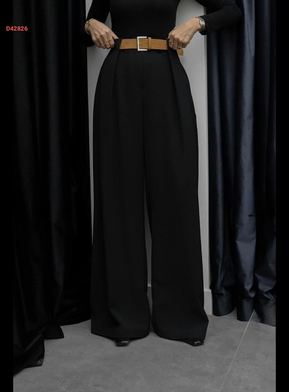 بنطال نسائي بكسرة واسعة مع حزام