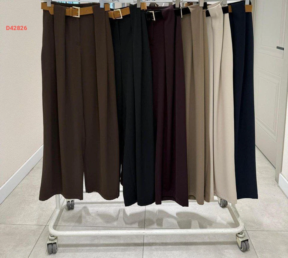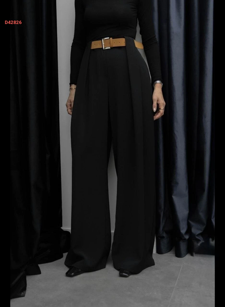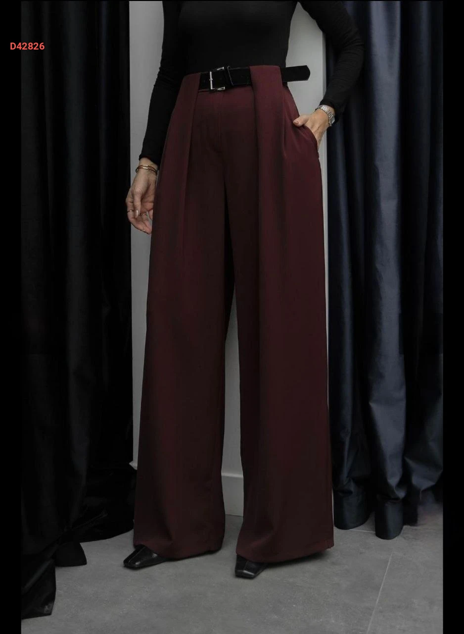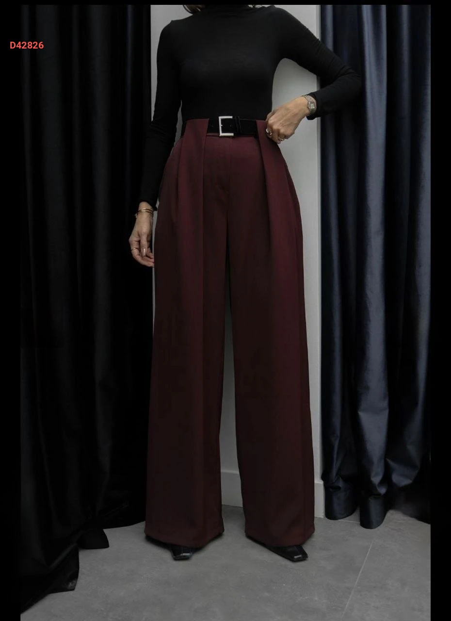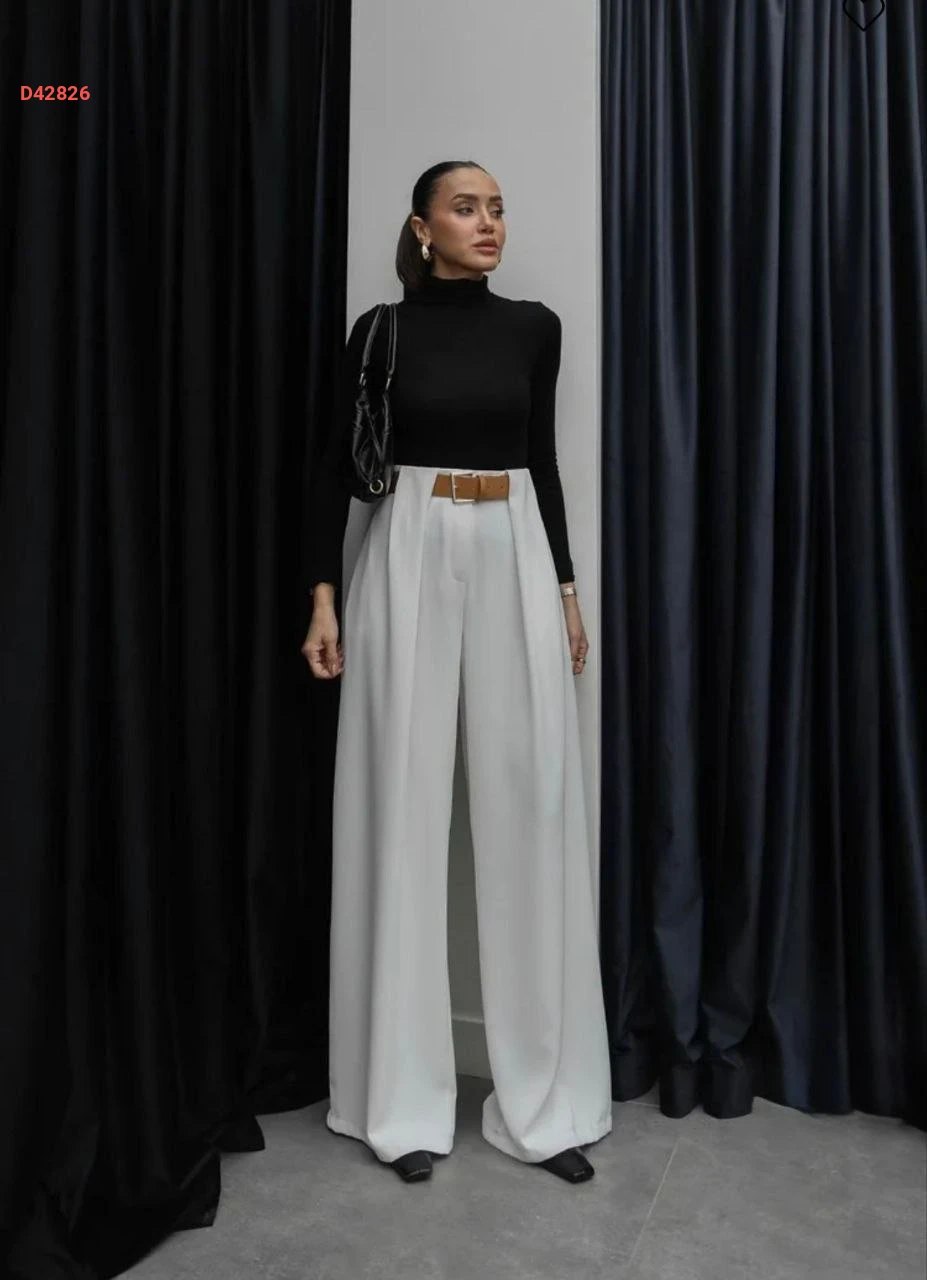 بنطال نسائي بكسرة واسعة مع حزام