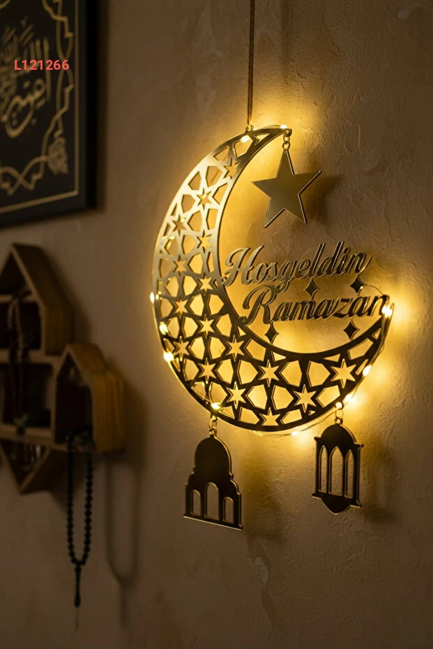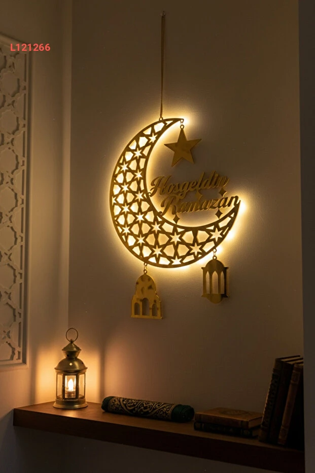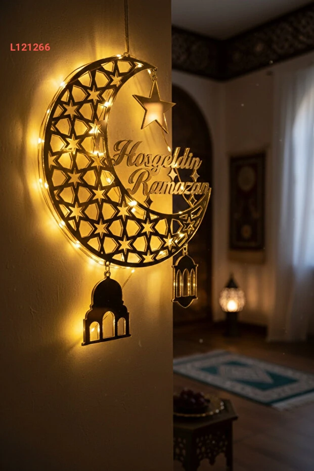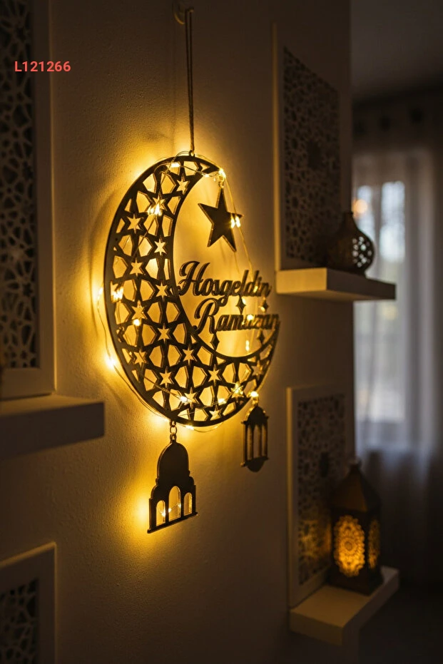 أضف لمسة دافئة ومميزة لاحتفالاتك الرمضانية مع زينة الحائط الرائعة من خشب مصنع LED! تأتي هذه الزينة المرآة بتصميم هلال جذاب، مما يجعلها مثالية لتعزيز أجواء الشهر الكريم. استمتع بإضاءة ساحرة وديكور أنيق يجمع بين الحداثة والتقليد في كل زاوية من منزلك.