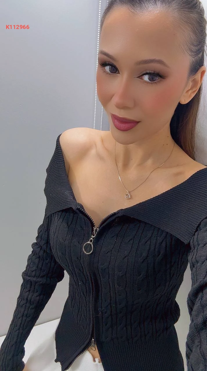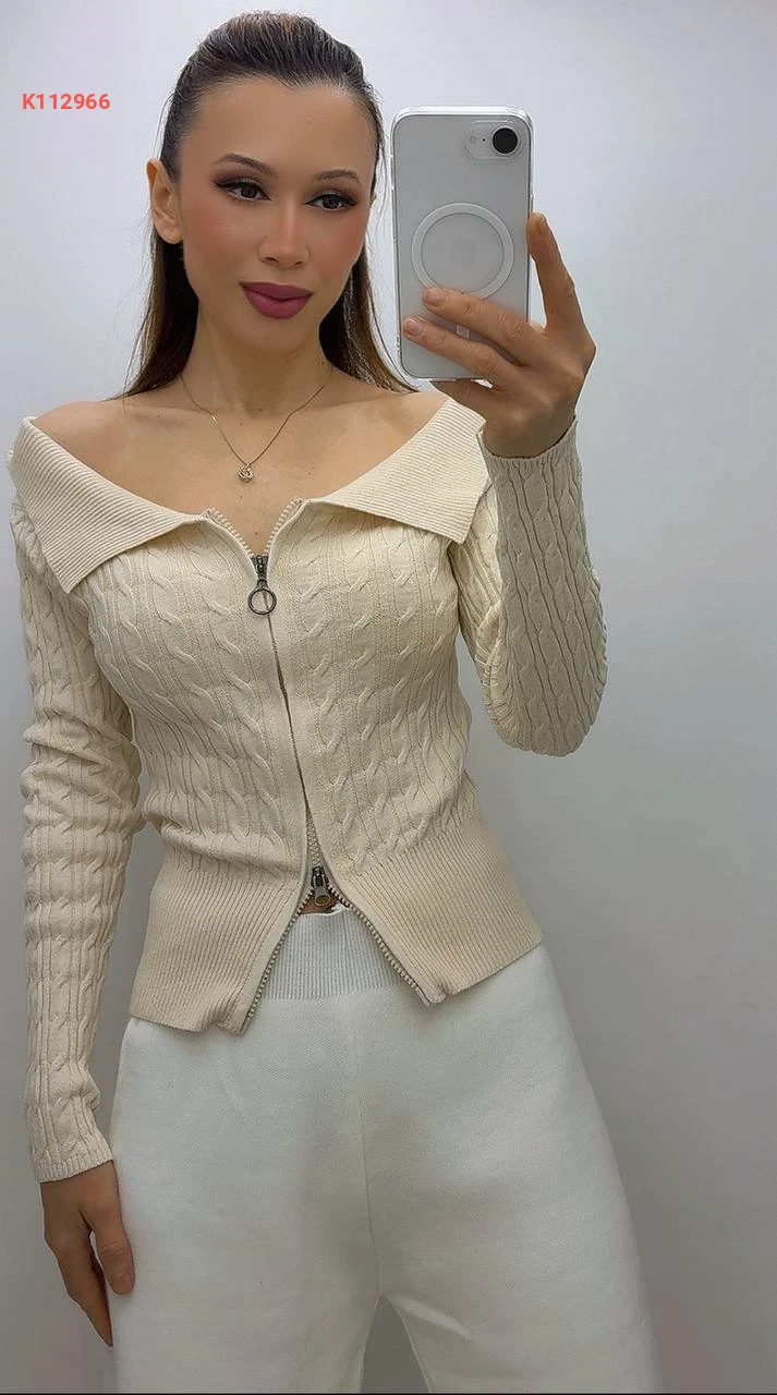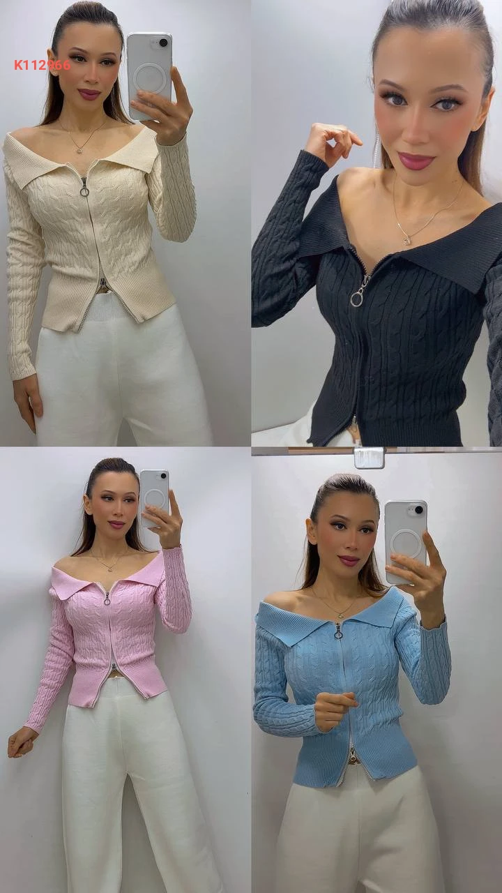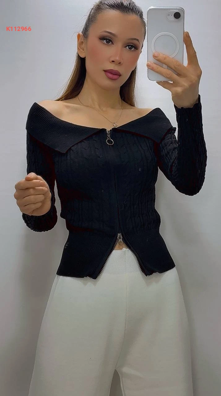 بلوزة صوف بسحاب بياقة مفتوحة الصدر