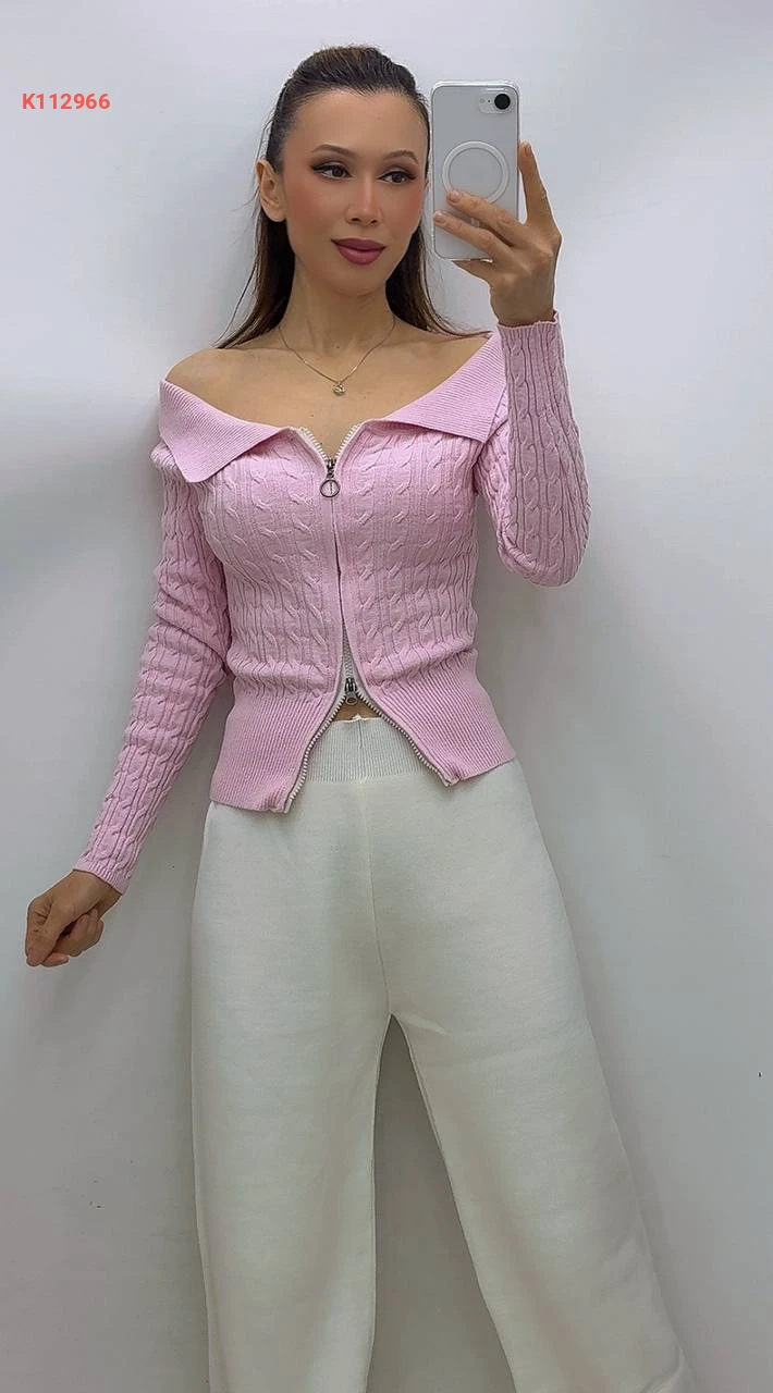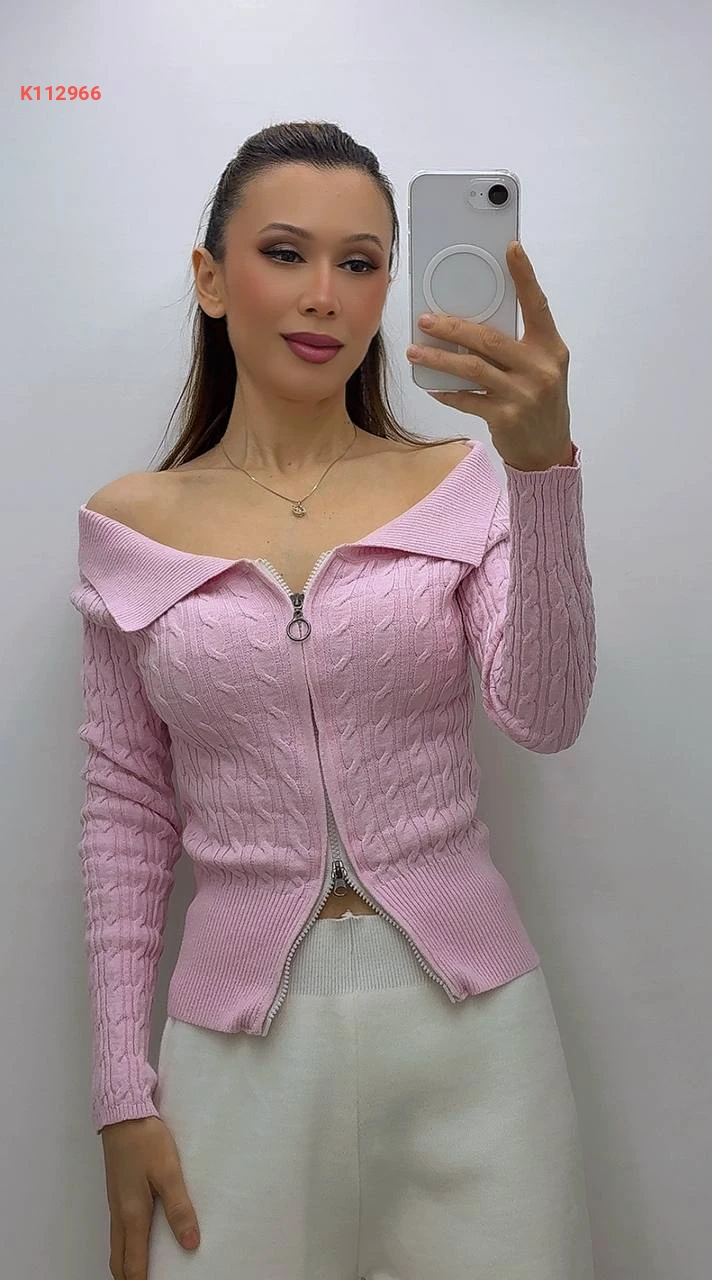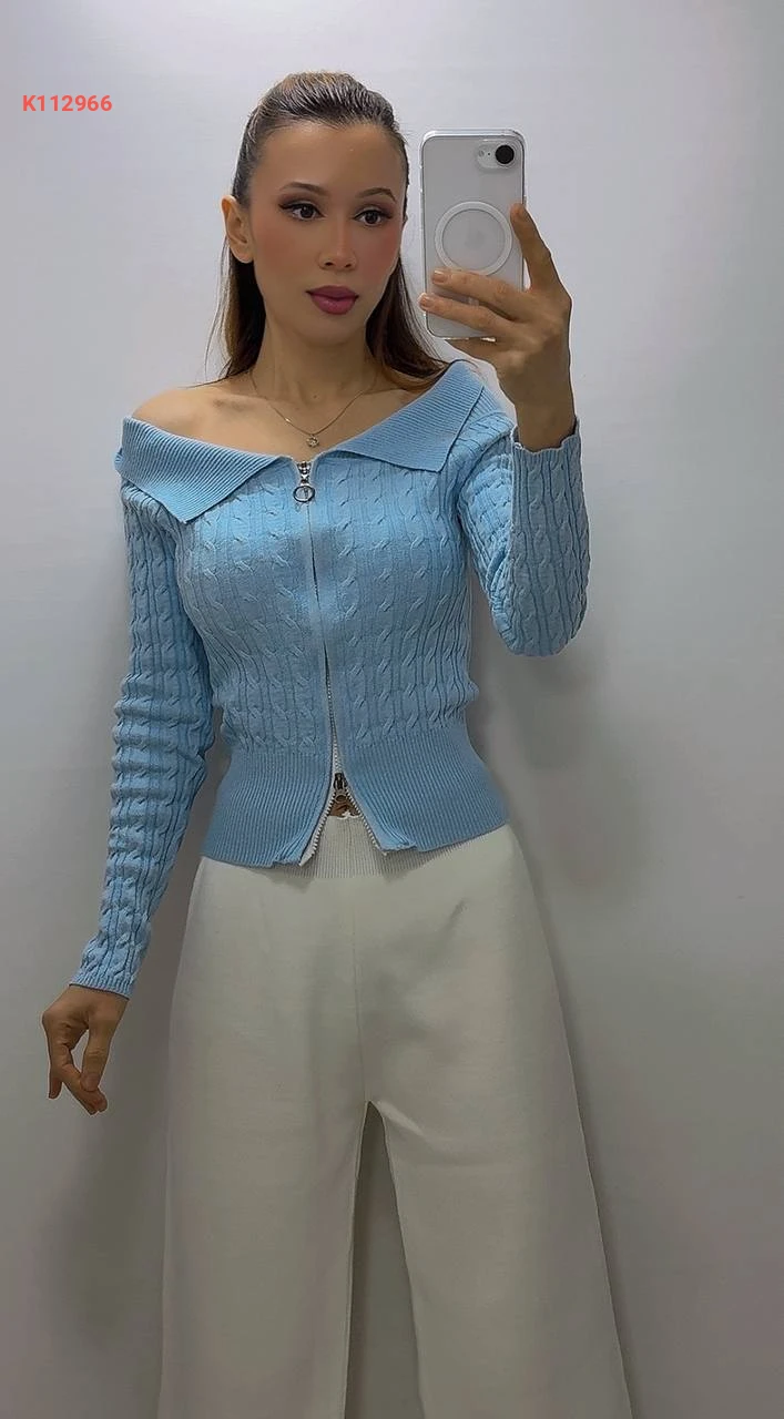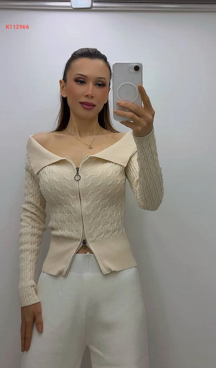 بلوزة صوف بسحاب بياقة مفتوحة الصدر