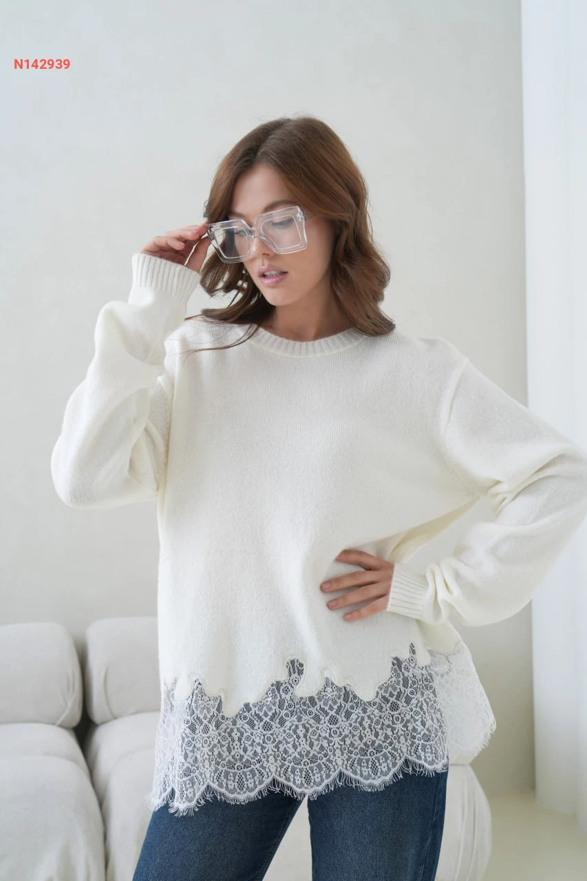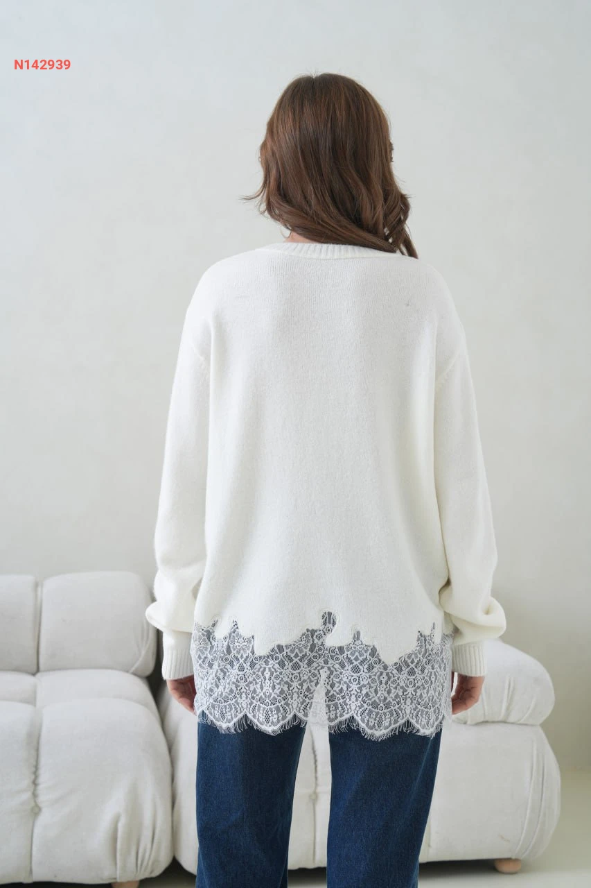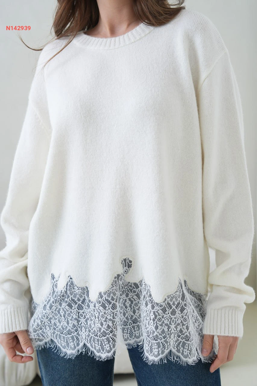 كنزة صوف ودانتيل كم طويل