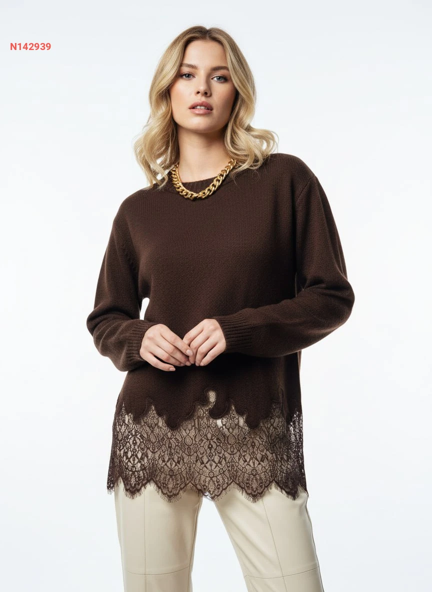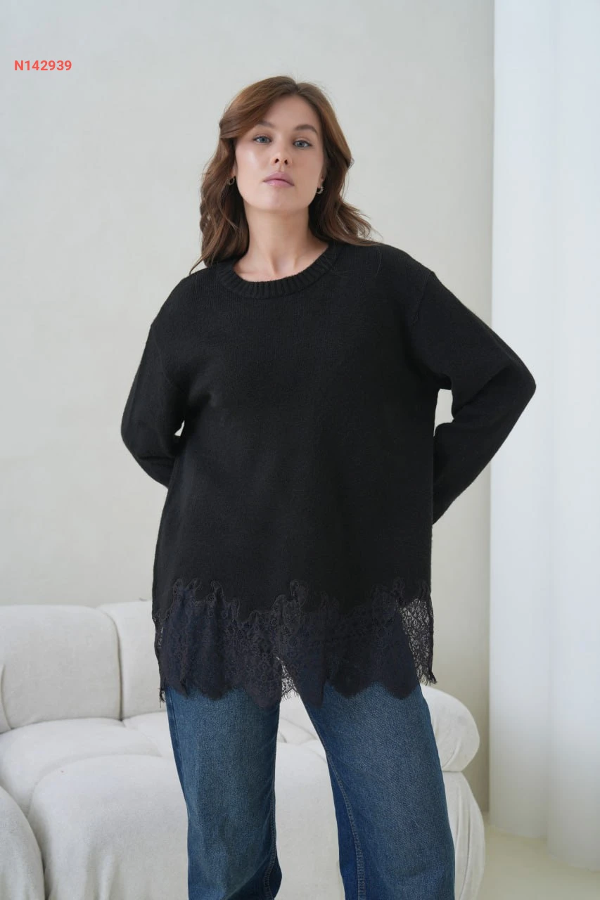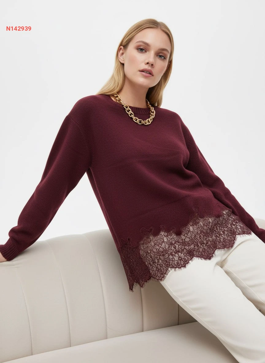 كنزة صوف ودانتيل كم طويل