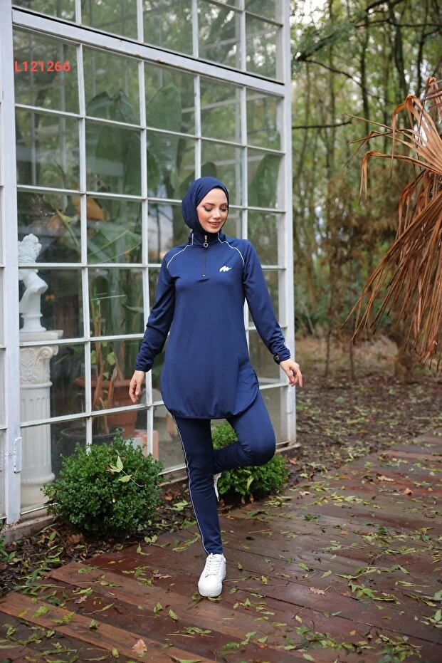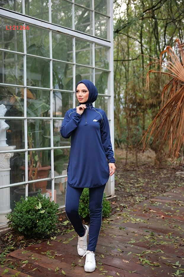 مجموعة إكسسوار رياضية للنساء من ويفي مودة - بنطال جوجر بقماش الغوص بسحاب نصفي