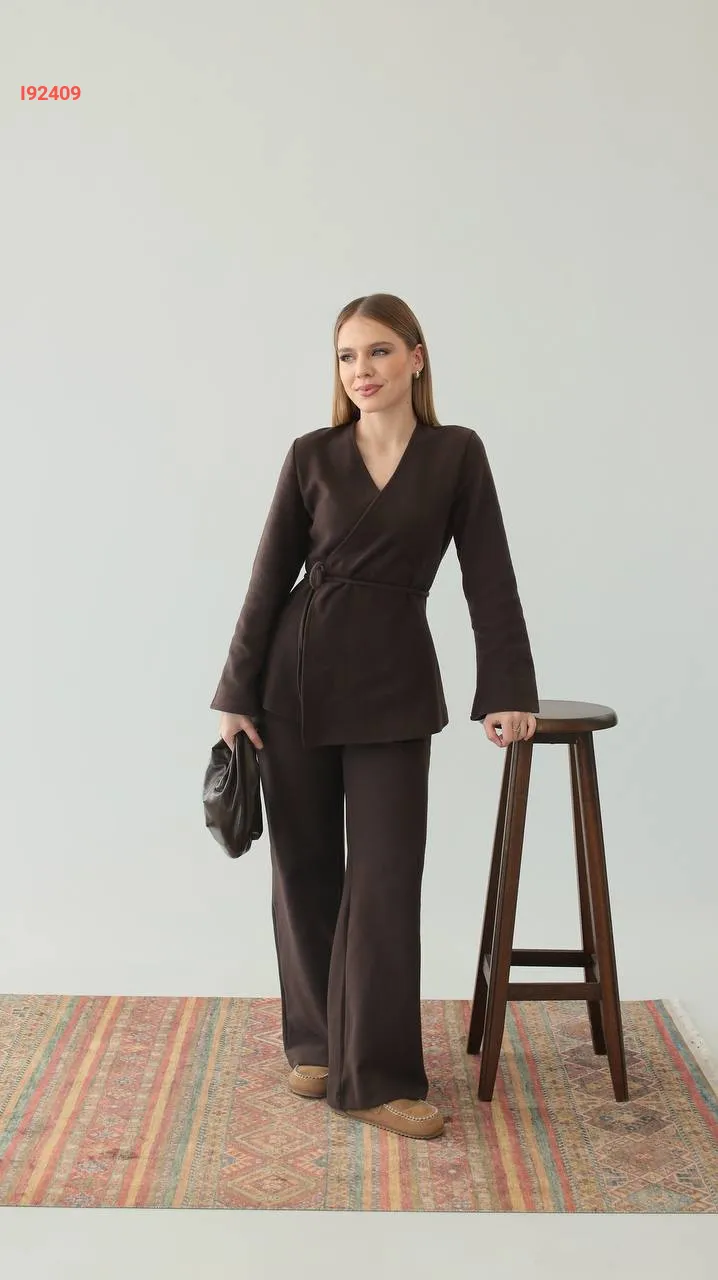 طقم بنطال وجاكيت لف بزنار