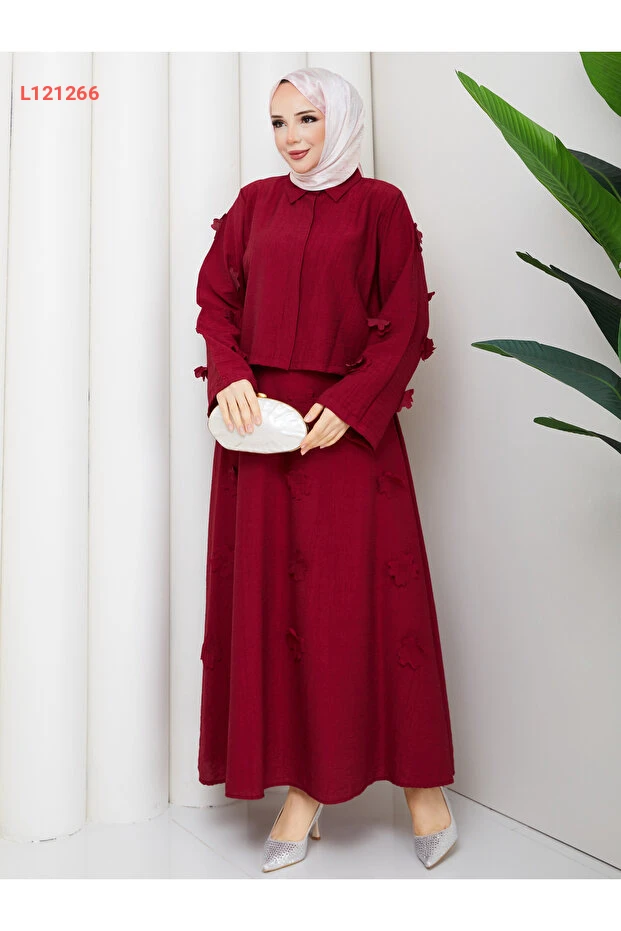 تألقي بأناقتك مع طقم "Wual giyim" المزود بتفاصيل زهور جذابة وتصميم عصري يلفت الأنظار. يتميز الطقم بقصته المريحة التي تمنحك حرية الحركة، مما يجعله الخيار المثالي للمناسبات اليومية أو outings مع الأصدقاء. اختاري الأناقة والراحة في آن واحد مع هذا الطقم الفريد!