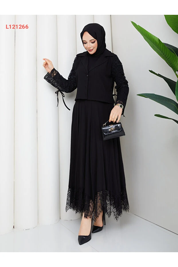 تألقي بإطلالة أنيقة مع طقم Wual giyim النسائي، الذي يجمع بين الأناقة والراحة. يتكون من يلك بتصميم عصري مزين بالتفاصيل الدانتيلية، ويأتي مع تنورة طويلة تمنحك إطلالة متكاملة تناسب كل المناسبات. اختاري هذا الطقم لتظهري بأفضل شكل مع الحفاظ على طابعك المحتشم.