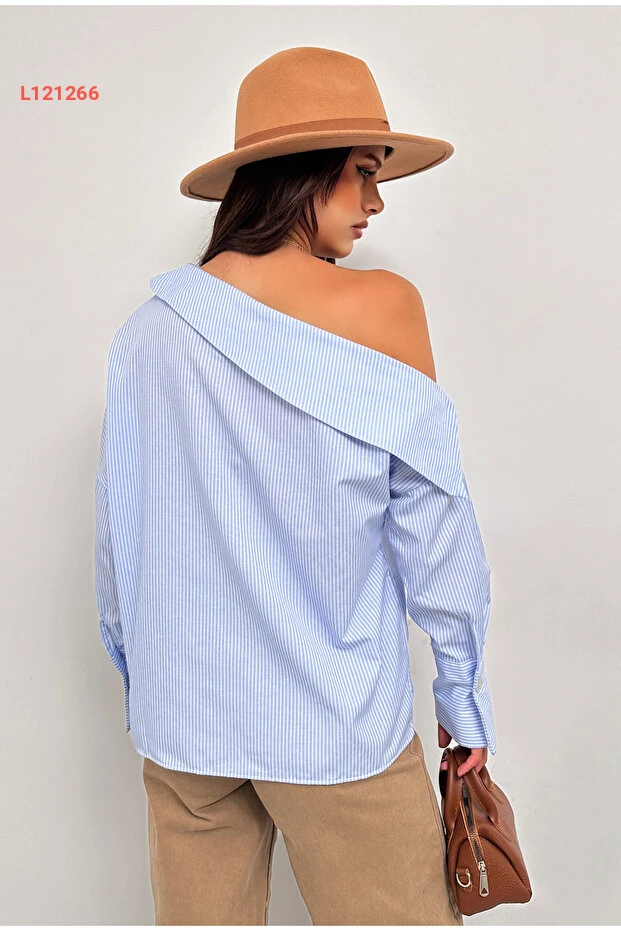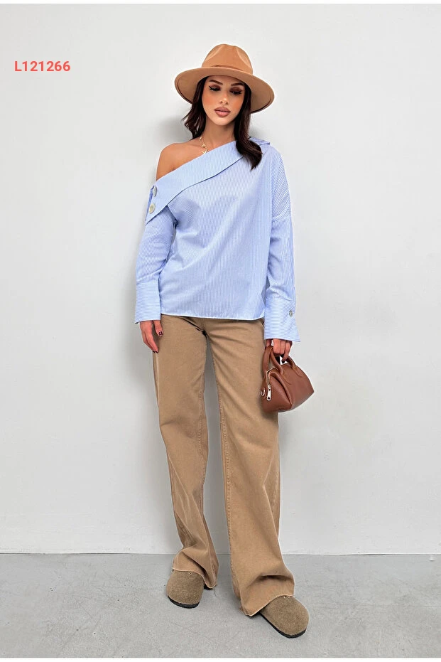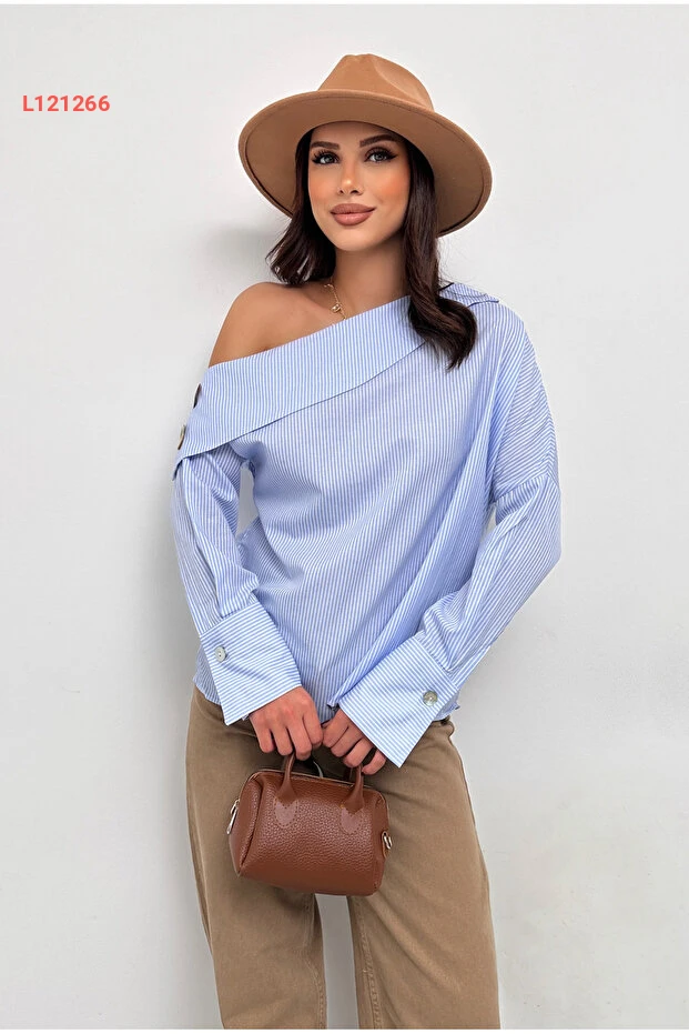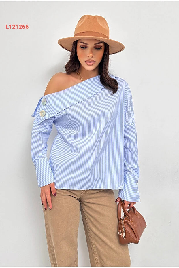 بلوزة نسائية بأزرار بتفاصيل غير متناظرة وأكمام طويلة