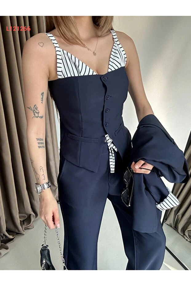 استمتع بإطلالة أنيقة وعصرية مع ثلاثي مجموعة Xtop Vatka، الذي يتألف من سترة مفصلة، قميص بحمالات، وسروال بالازو عالى الخصر مرن. يتميز هذا الطقم بتصميمه الراقي الذي يضمن لك الراحة والأناقة في كل مناسبة، مما يجعله الخيار المثالي للتمتع بإطلالة متكاملة وجذابة.