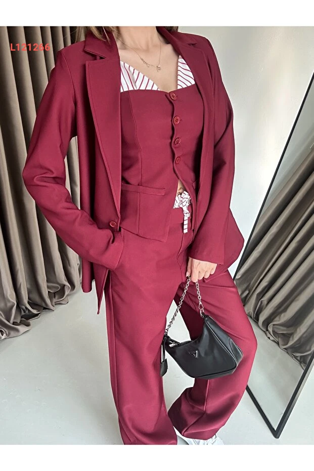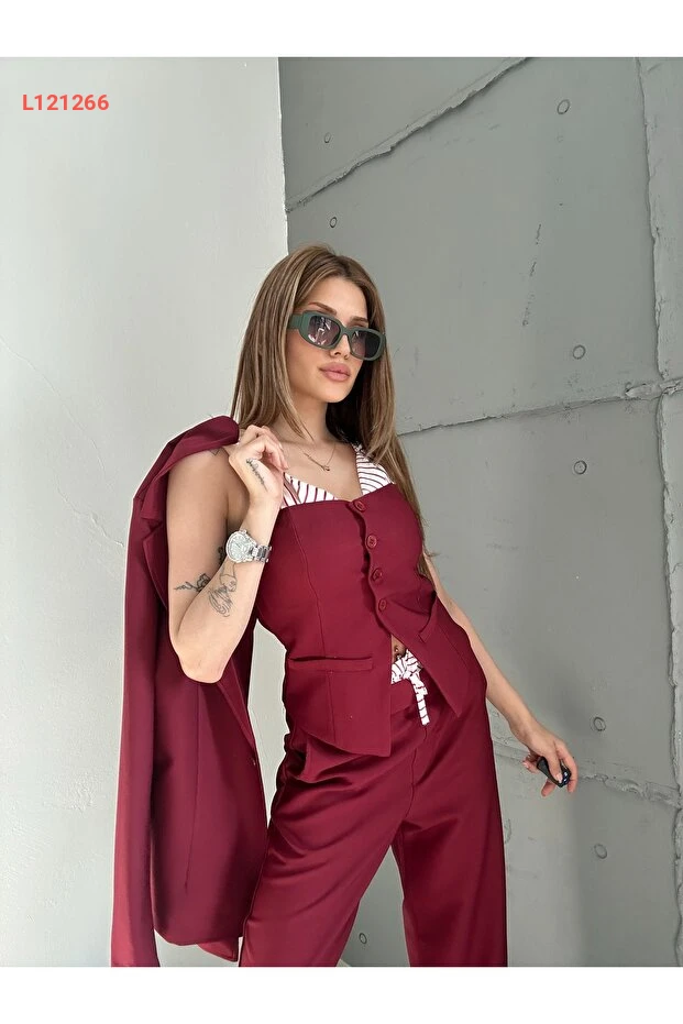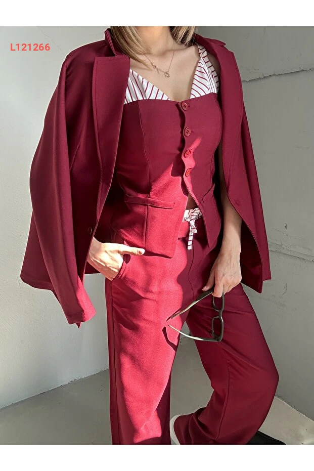 استمتع بإطلالة أنيقة وعصرية مع طقم Xtop المكون من ثلاثة قطع، الذي يتضمن سترة بتفاصيل جذابة، وحمالة مريحة، وبنطال بالازو عالي الخصر بخصر مرن. يجمع هذا الطقم بين الراحة والأناقة، مما يجعله خيارًا مثاليًا للمناسبات المتنوعة أو للمظهر اليومي العصري. تألقي بثقة وكوني محط الأنظار في كل مناسبة!