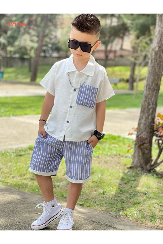 طقم أطفال صيفي أولاد - قميص وشورت - مجموعة صيفية مريحة من يالتشين أوغلو