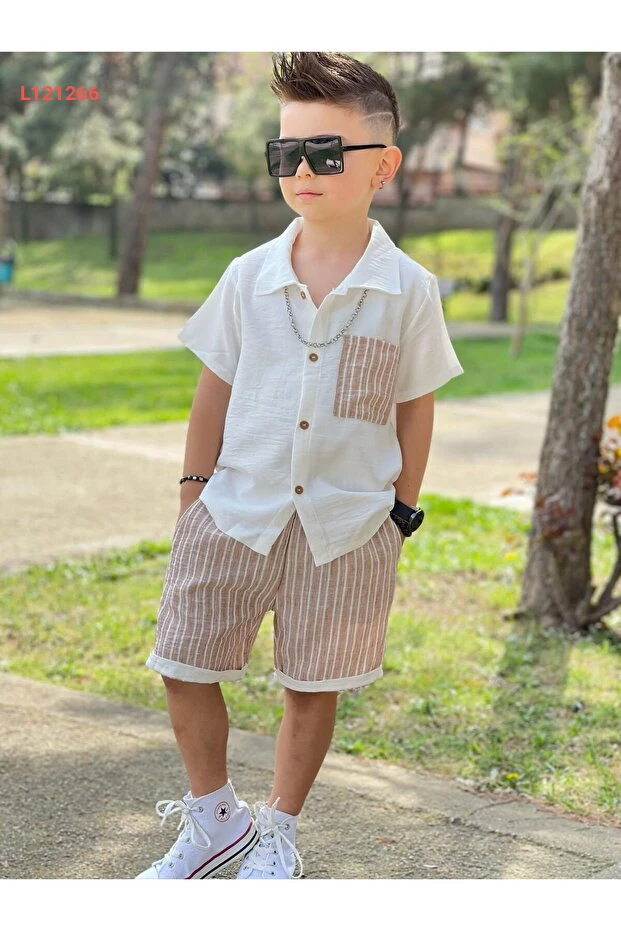 مجموعة صيفية أولاد يالتشين أوغلو - قميص وشورت - ملابس صيفية مريحة للأطفال