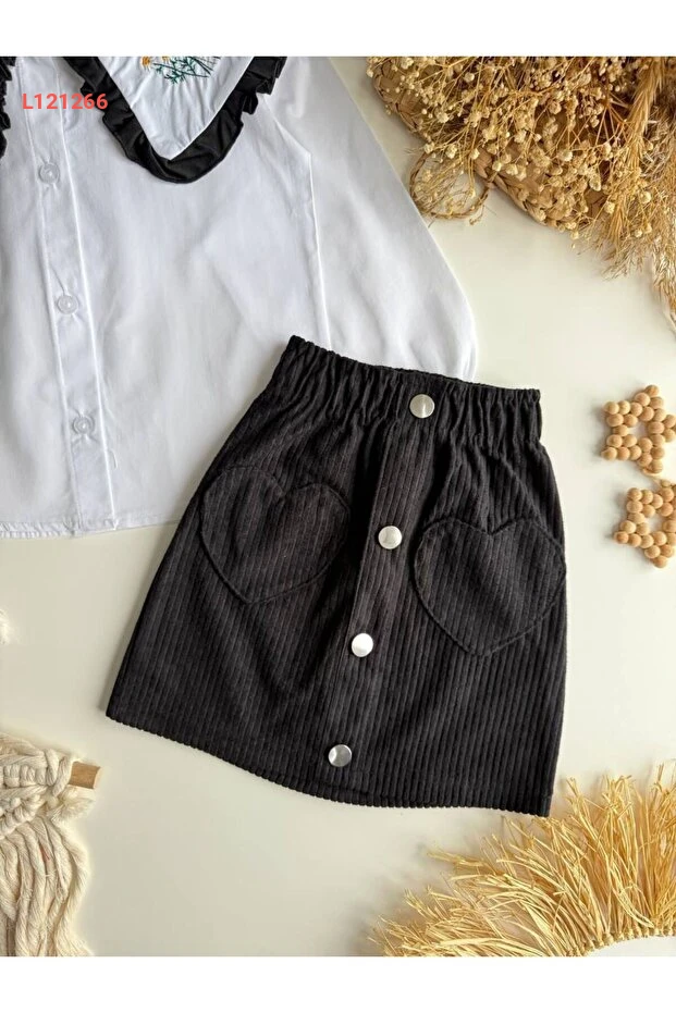 اجعل ابنتك تتألق في المناسبات الخاصة مع طقم YARENKİDS الذي يتضمن تنورة فاخرة مصنوعة من القماش المخملي الوردي والأسود، مزينة بأزهار مزخرفة رائعة. تتميز هذه الإطلالة الأنيقة بالراحة والجمال، مما يجعلها مثالية للاحتفالات والمناسبات العائلية. امنحي صغيرتك لمسة من السحر والتميز في كل لحظة!