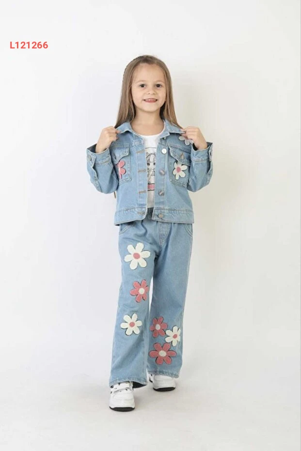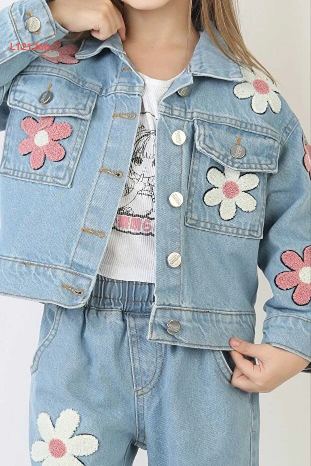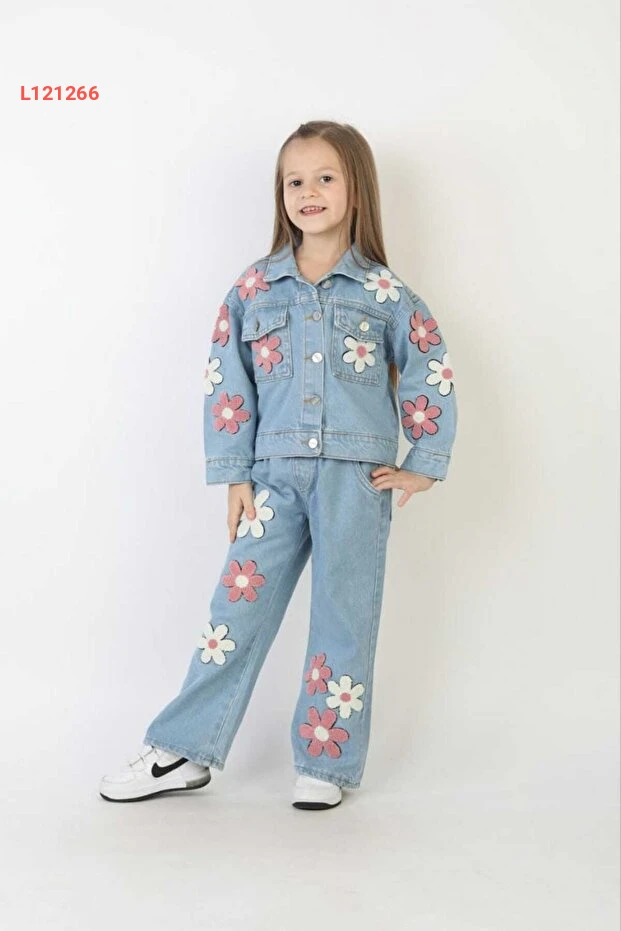 استمتعي بأناقة لا مثيل لها مع طقم YAREN KIDS! يتكون هذا الطقم من بنطلون جينز مزين بنقوش زهرية دافئة وسترة جينز متناسبة، مما يجعله الخيار المثالي لأي مناسبة احتفالية. تفاصيله المطرزة وجودته العالية تضمن راحتها وأناقتها في كل لحظة.