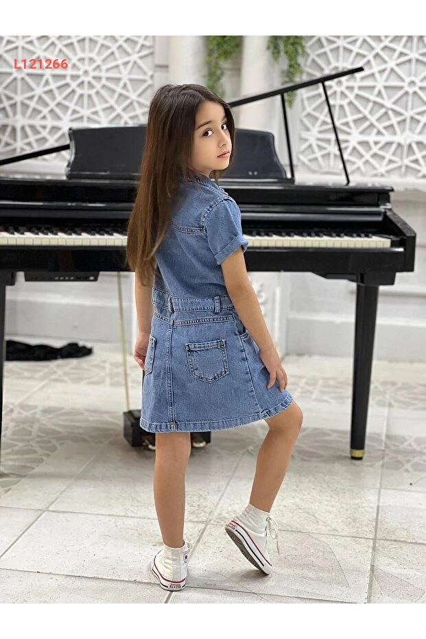 فستان جينز قصير للبنات بأزرار وأكمام قصيرة من ينس كولستار، موسم جديد