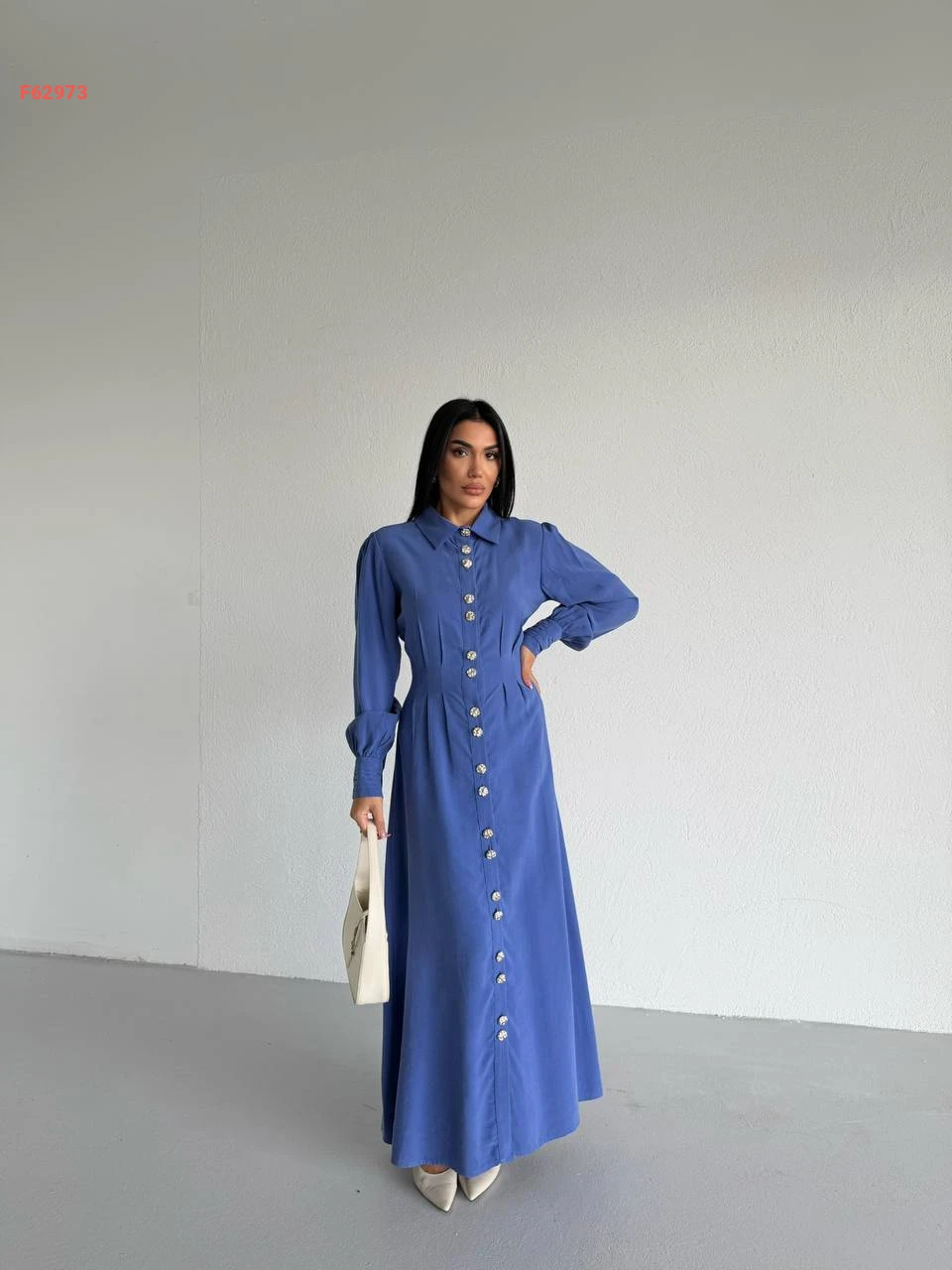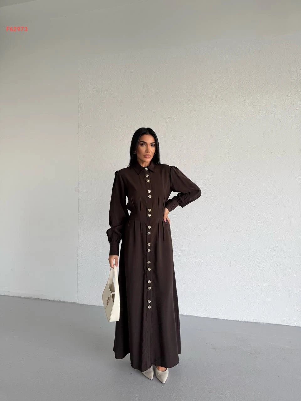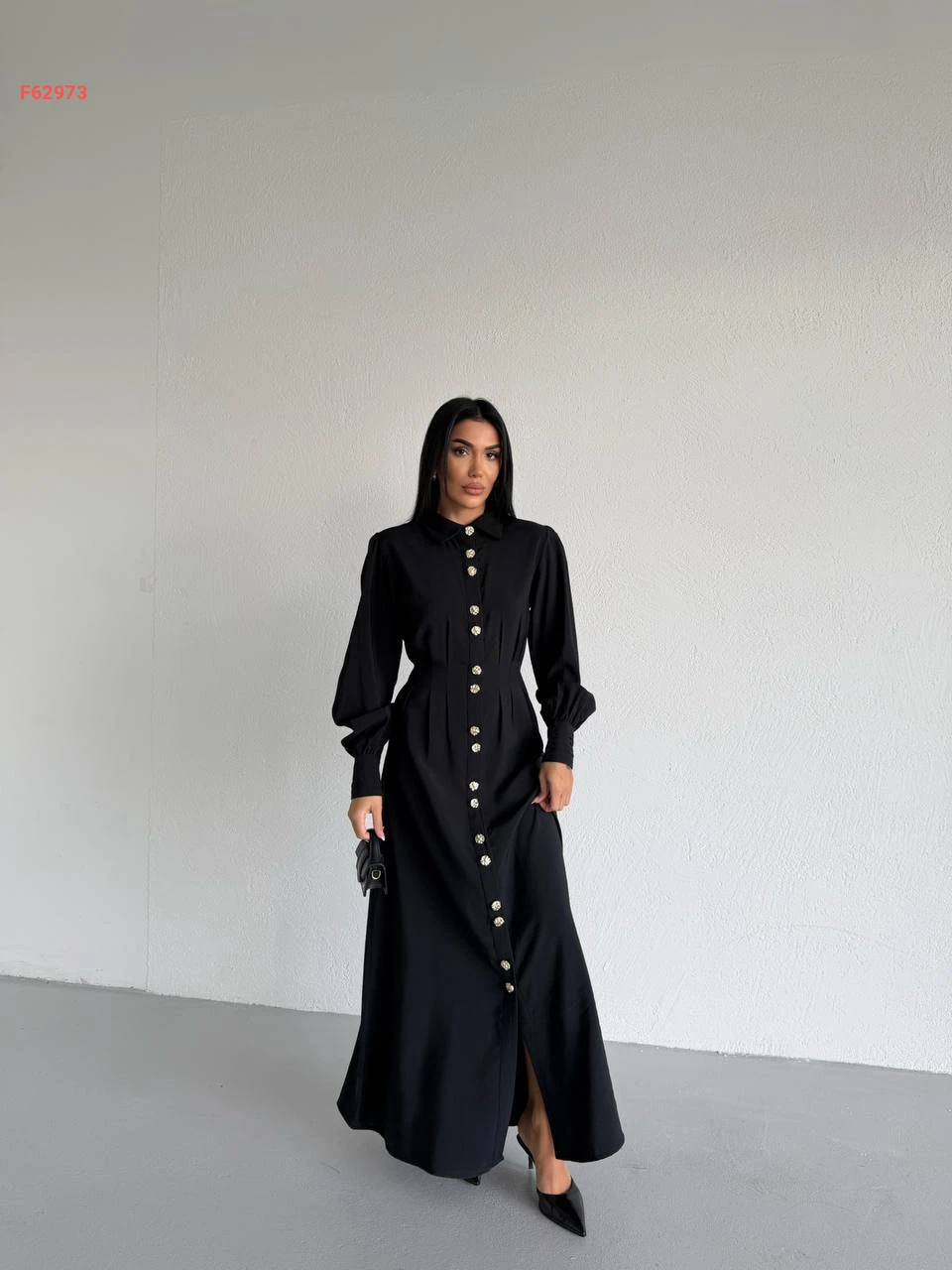 فستان زارا طويل بأزرار