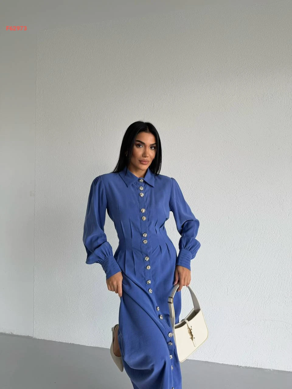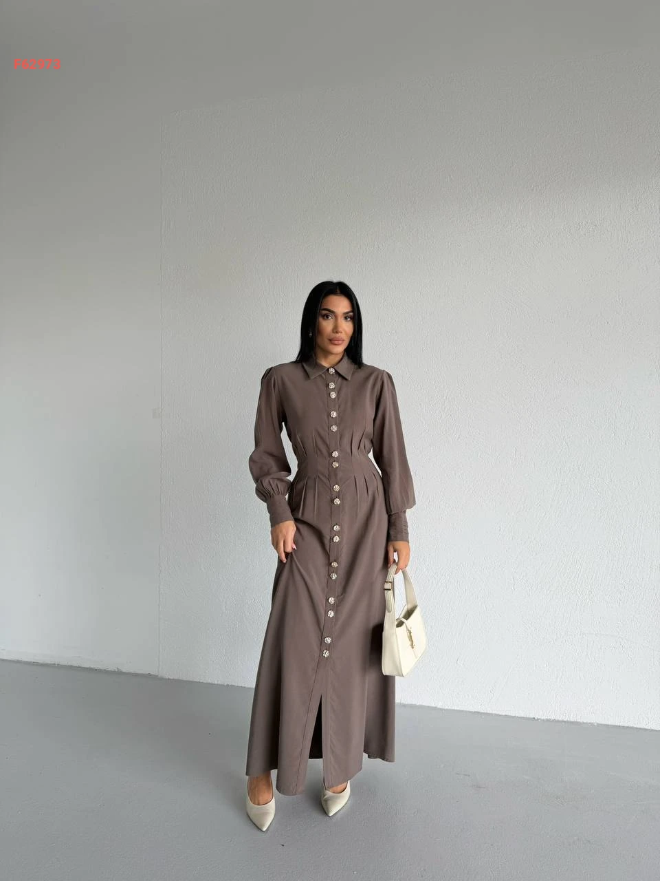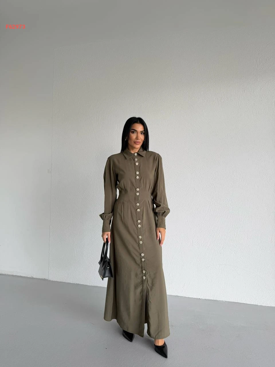 فستان زارا طويل بأزرار