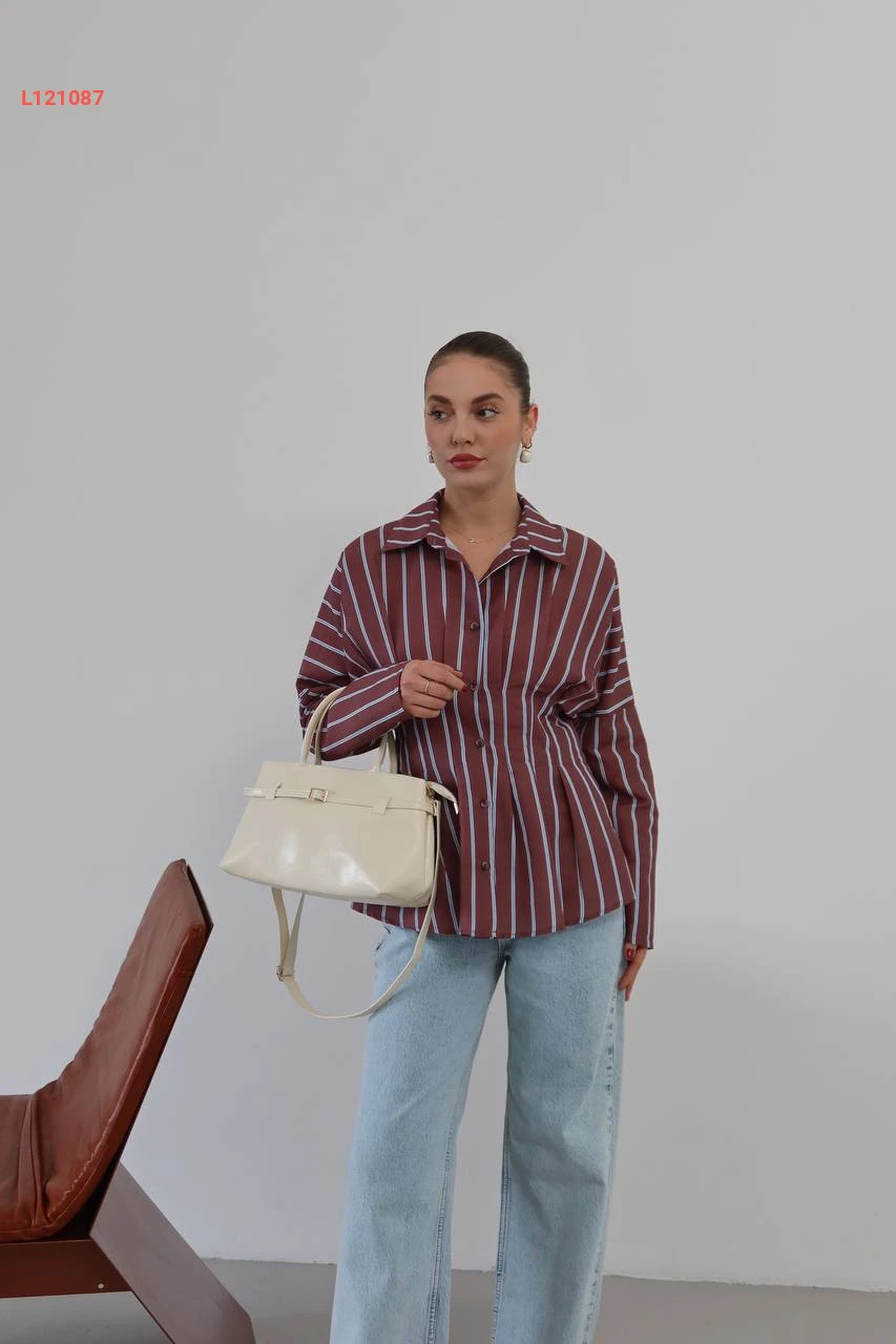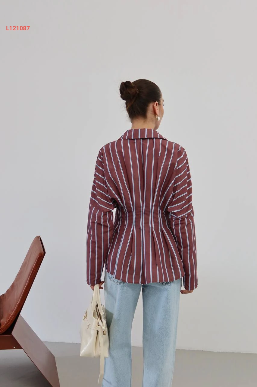 قميص زارا مقلم مع تفاصيل مخصرة