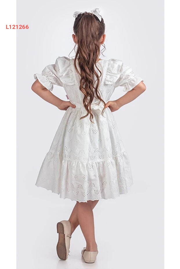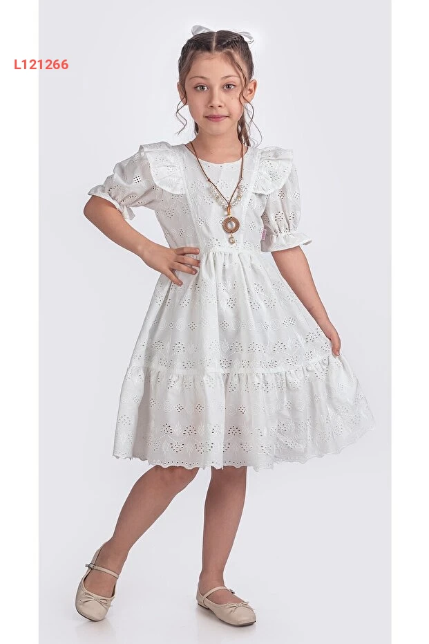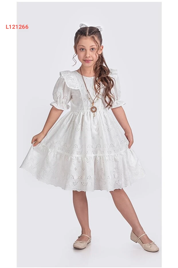 فستان أطفال بنات بقلادة وأكمام كاربوز قصيرة من زازيكا