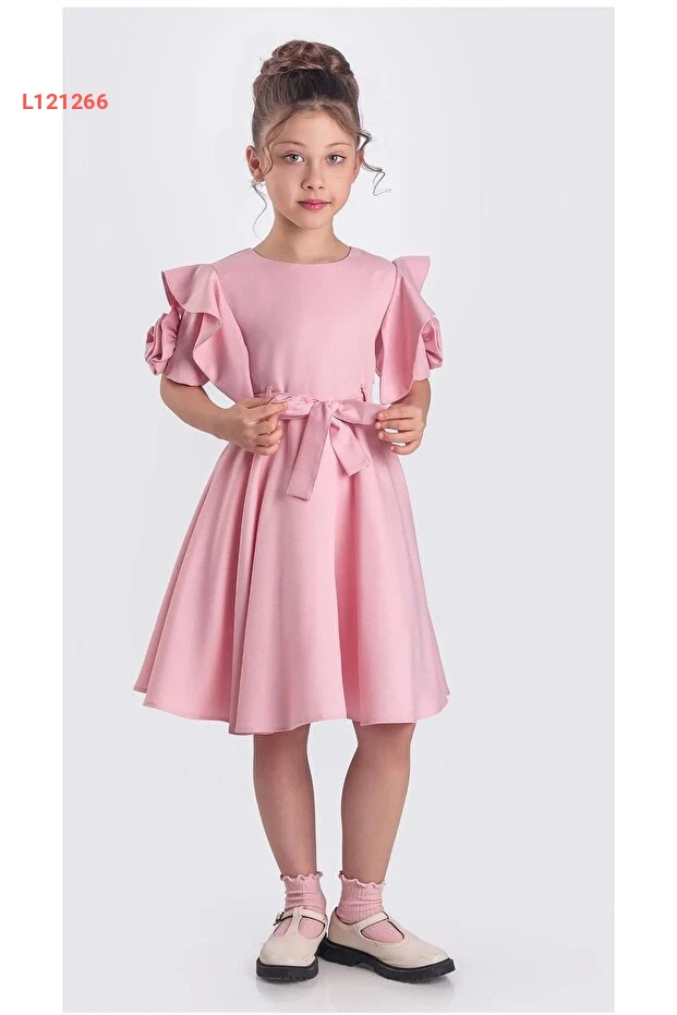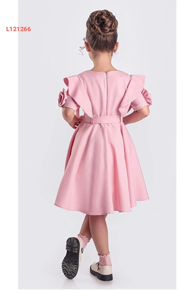 فستان زازيكو للأطفال بنات بتفاصيل وردية قصيرة الأكمام