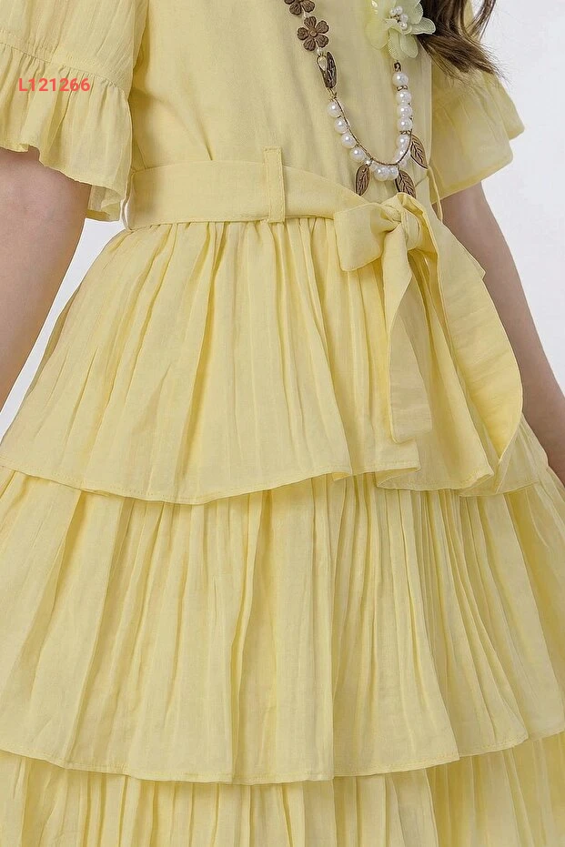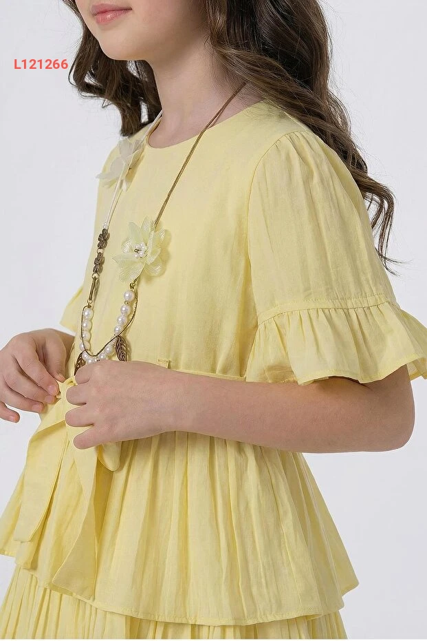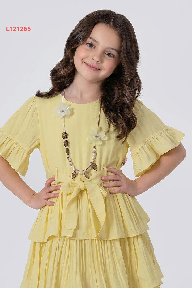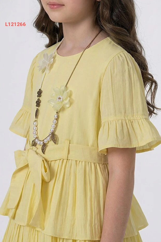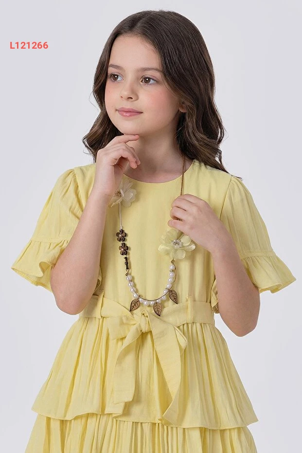 فستان زازيكو للأطفال مع أكمام قصيرة وطبقات مع قلادة