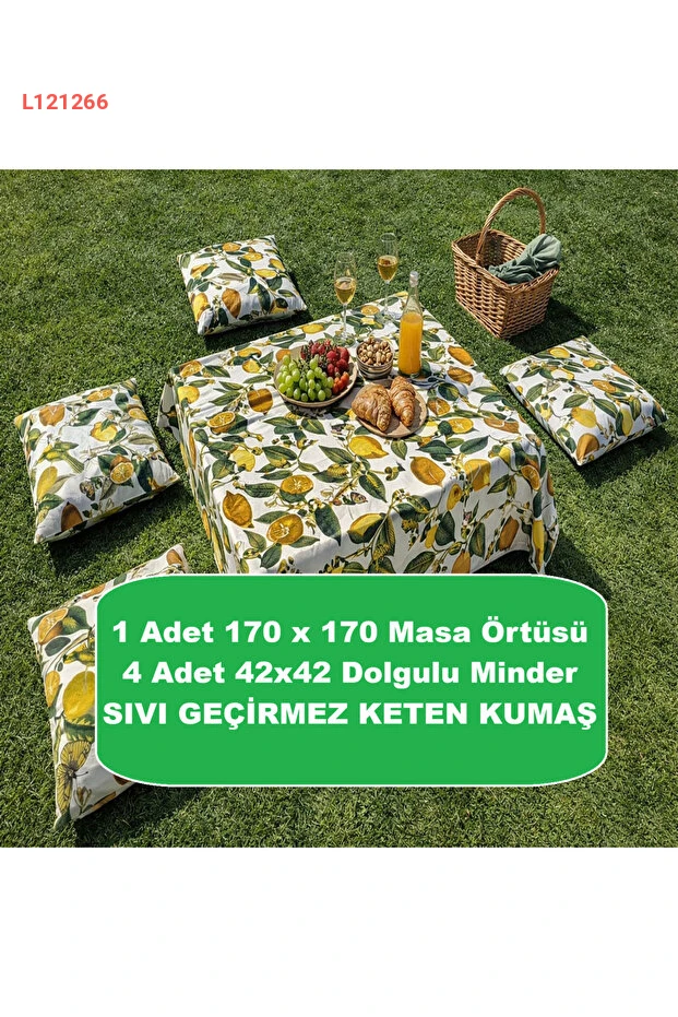استمتع بمغامراتك في الهواء الطلق مع مجموعة النزهات الفاخرة من Zeren Home، حيث تأتي بطبعة الليمون الأنيقة على قماش متين مقاوم للماء. يتضمن هذا الطقم قماش مائدة بمقاس 170x170 سم و4 وسائد مريحة، مما يجعله الخيار المثالي لجعل كل نزهة مريحة وجذابة. اجعل كل لحظة في الطبيعة مميزة مع لمسة من الأناقة!