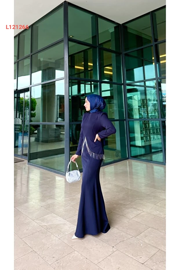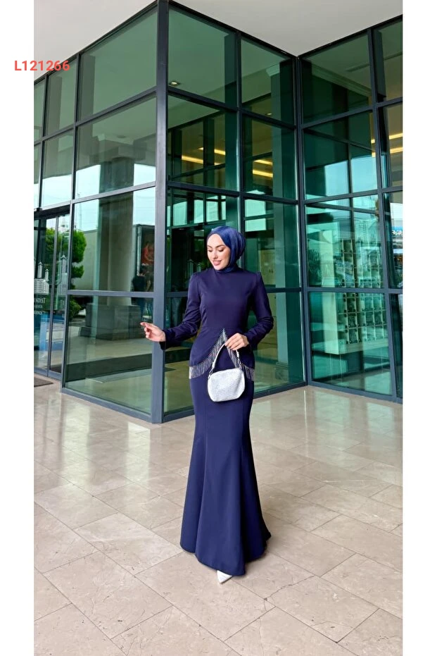 فستان سهرة محتشم مزين بسلسلة من مودا زيناء