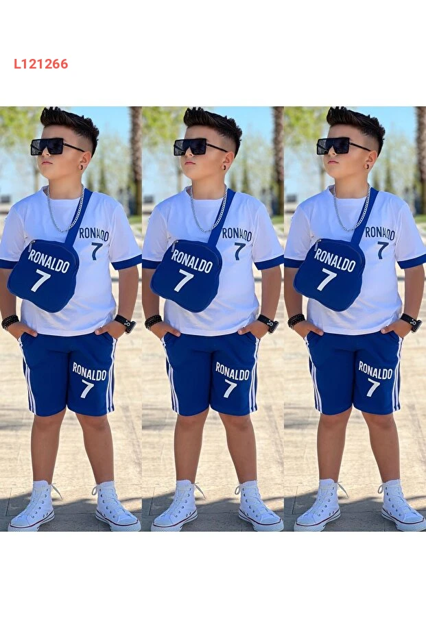 طقم رياضي أولاد مكون من 3 قطع - تيشيرت شورت وحقيبة من زينوش كيدز
