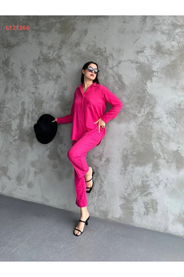 استمتعي بالأناقة والراحة مع طقم ZF BUTİK المكون من قميص وبنطال نسائي من الكتان. يجمع هذا التصميم بين البساطة العصرية والجودة العالية، مما يجعله مثالياً لمختلف المناسبات. ضروري في خزانة ملابسك، سيوفر لك إطلالة أنيقة ومريحة في كل الأوقات.