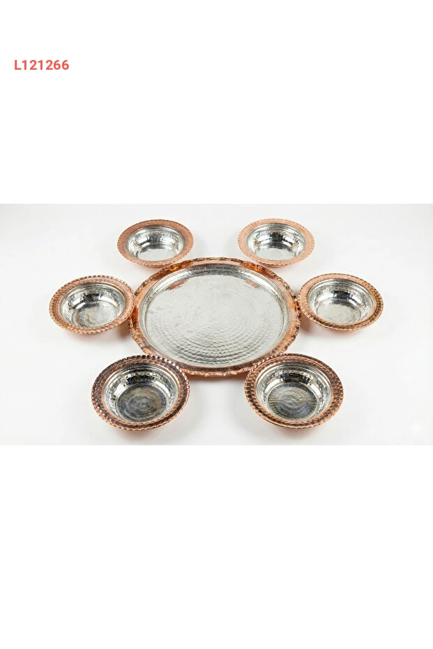 استمتع بتجربة تقديم فاخرة مع صينية Zinnun Bakır ذات الحواف الملتفة، التي تأتي بحجم 25 سم، والتي تضيف لمسة من الأناقة إلى أي مائدة. كما تحتوي هذه المجموعة على 6 صحون صغيرة (12 سم) مثالية لتقديم المقبلات والمكسرات في حفلاتك، مع تصميم يجمع بين الجمال والعملية، مما يجعل كل وجبة لحظة مميزة ولذيذة.