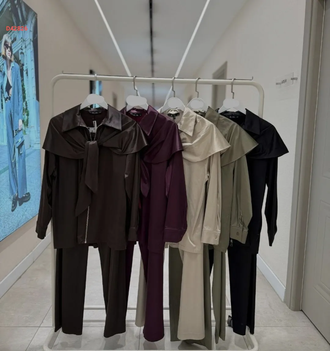 طقم بنطال بسحاب مع شال ربط عالكتف ، بقبة قميص
