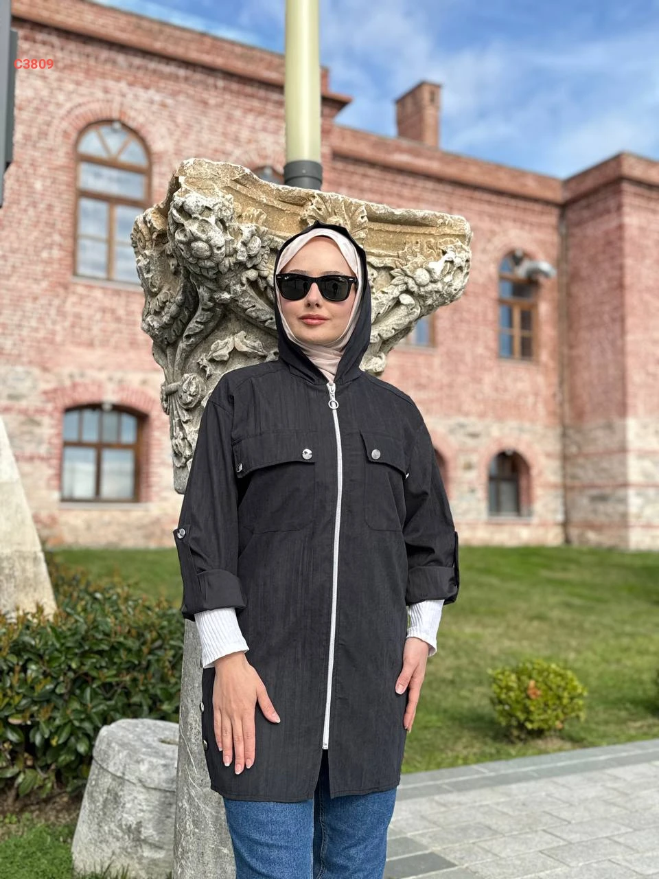 جاكيت بسحاب وطاقية